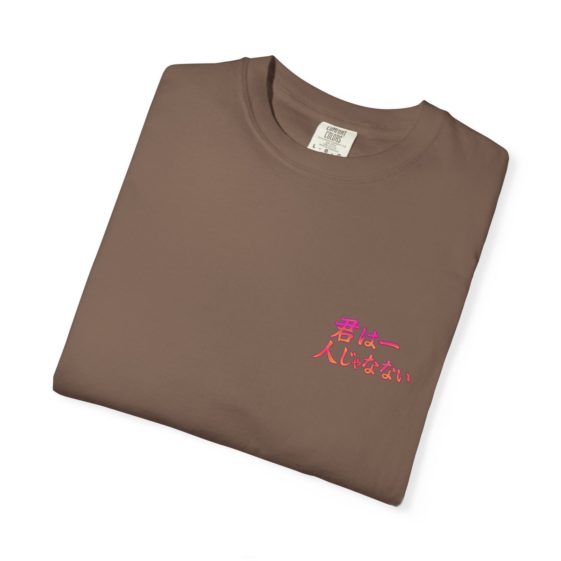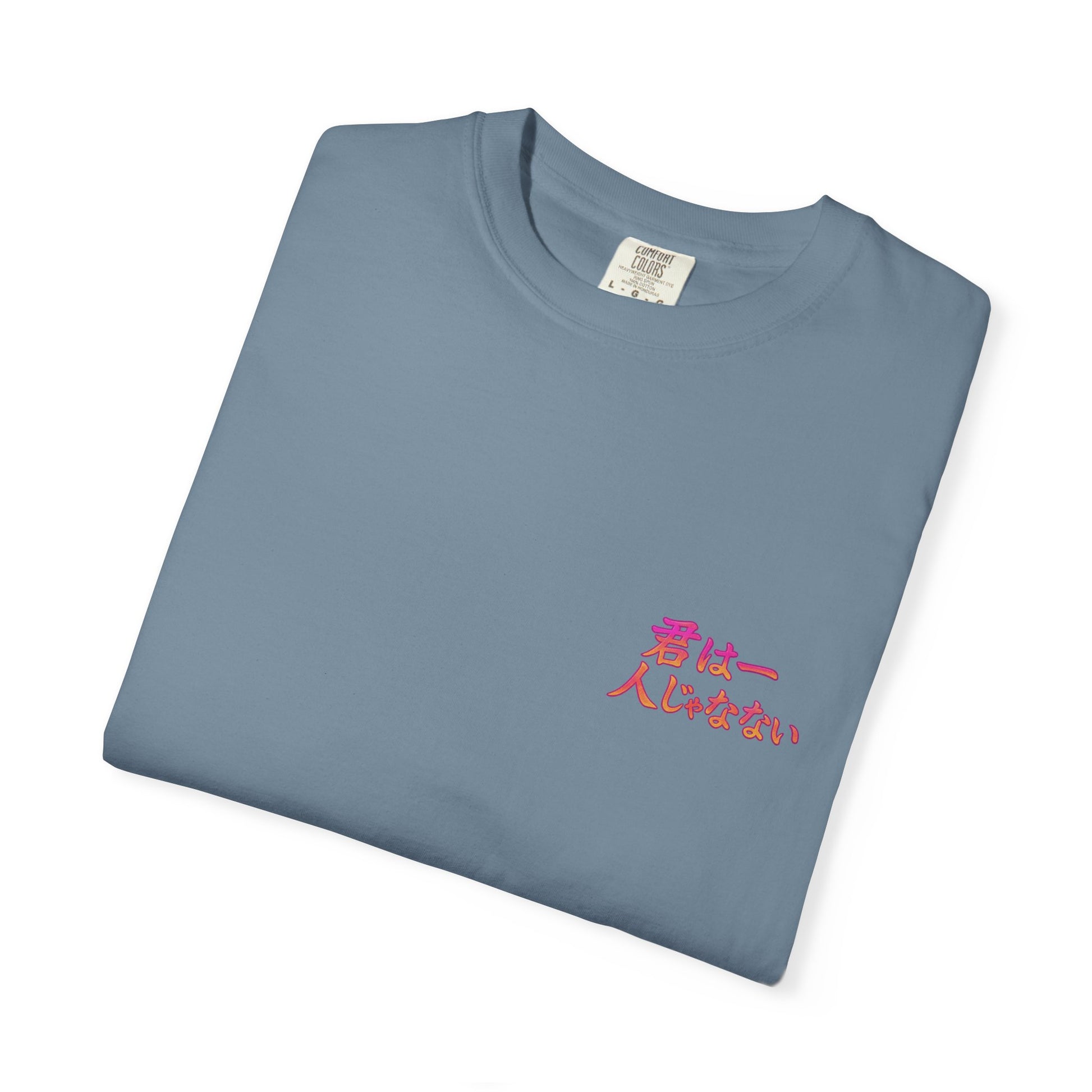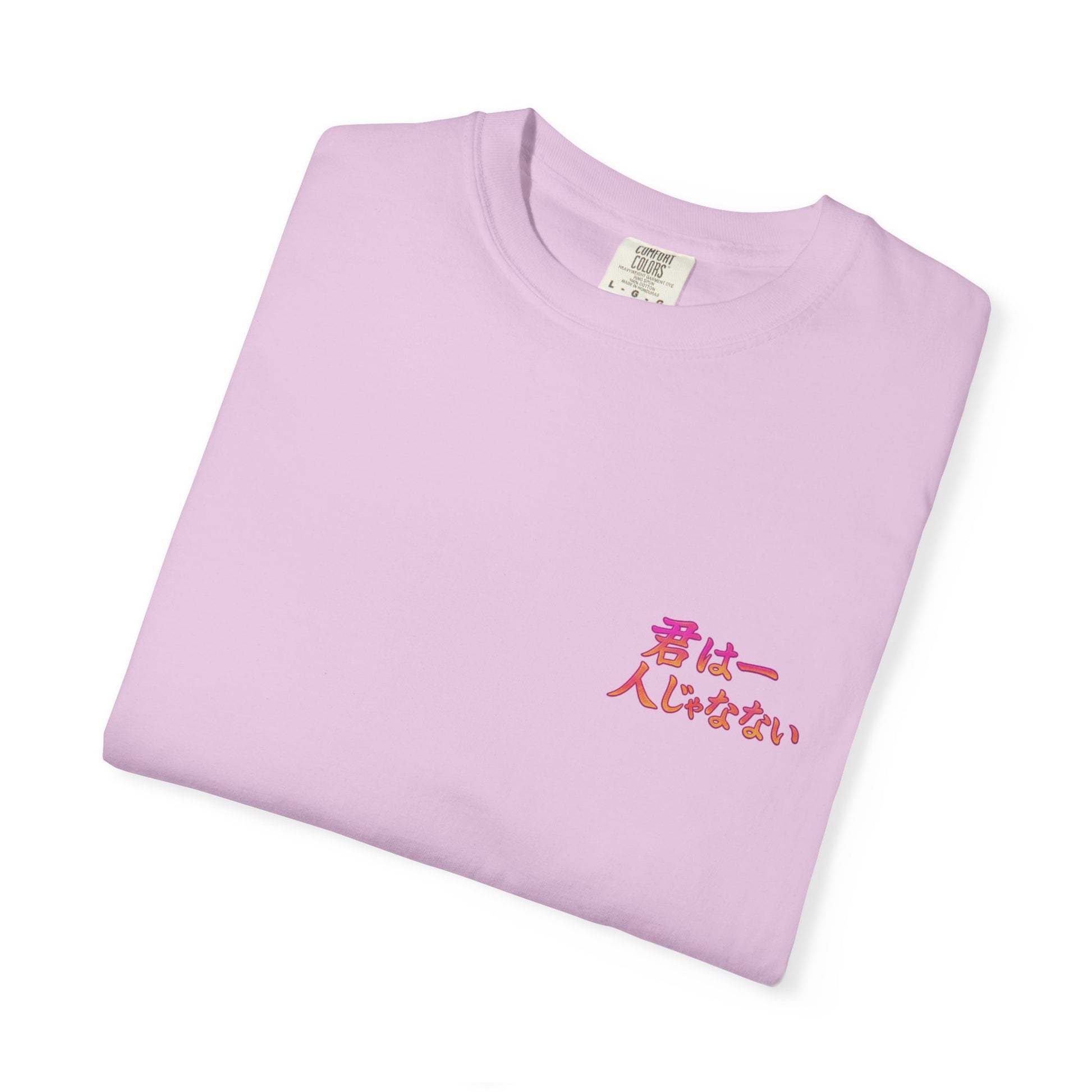 Unleash your inner hero with this anime-inspired Comfort Colors® tee, crafted for dreamers, warriors, and believers. Featuring original hand-drawn artwork and the phrase 君は一人じゃない ("You are not alone") in glowing Japanese text, this shirt is more than style — it's a reminder that strength lies in connection.