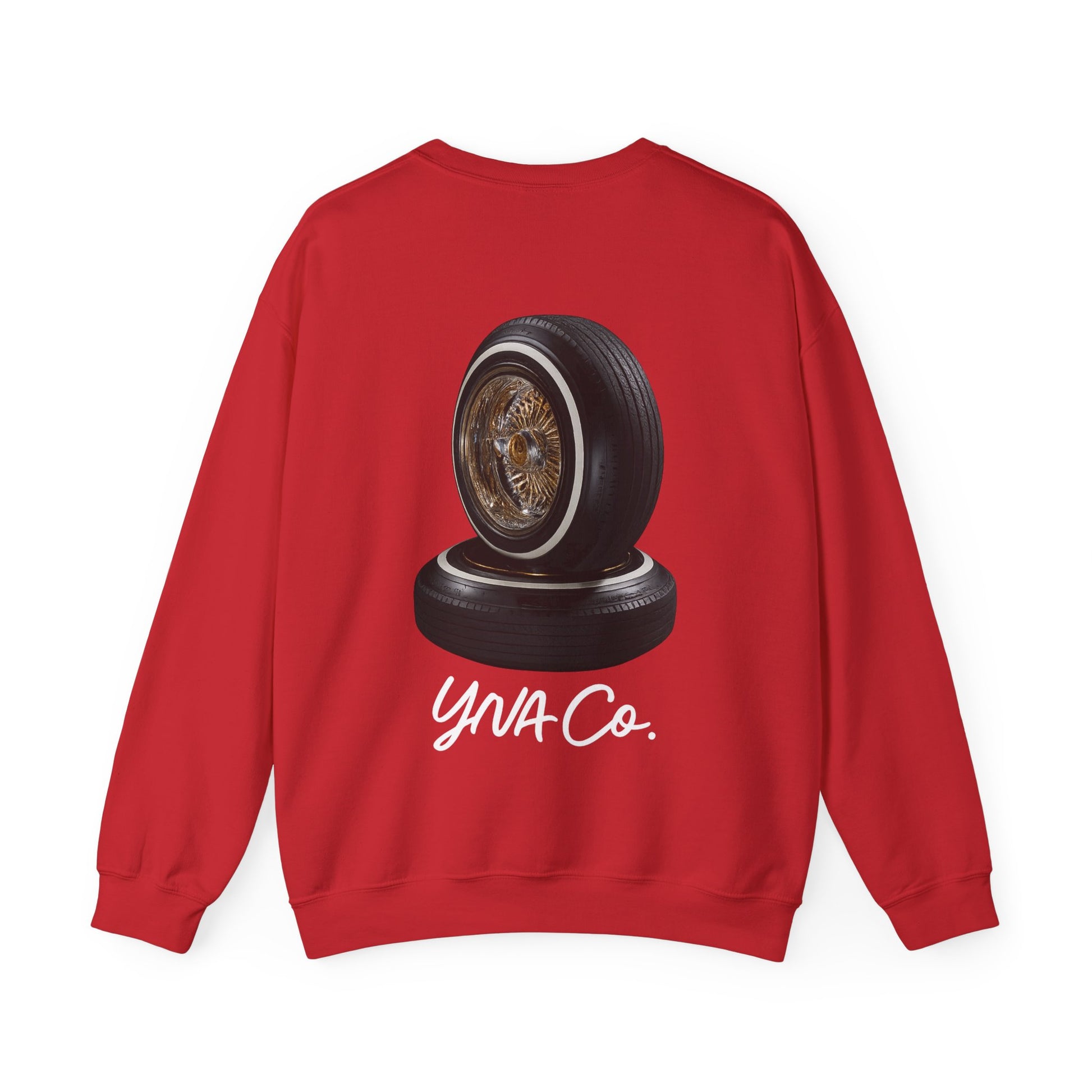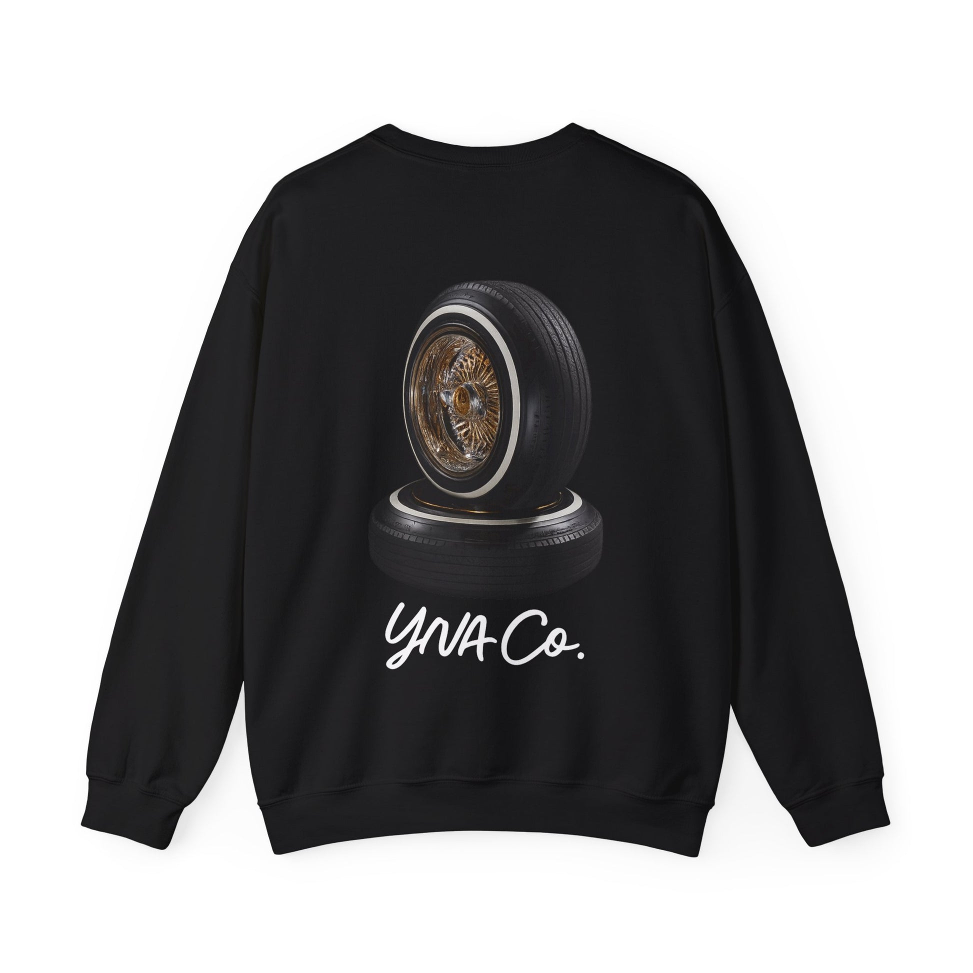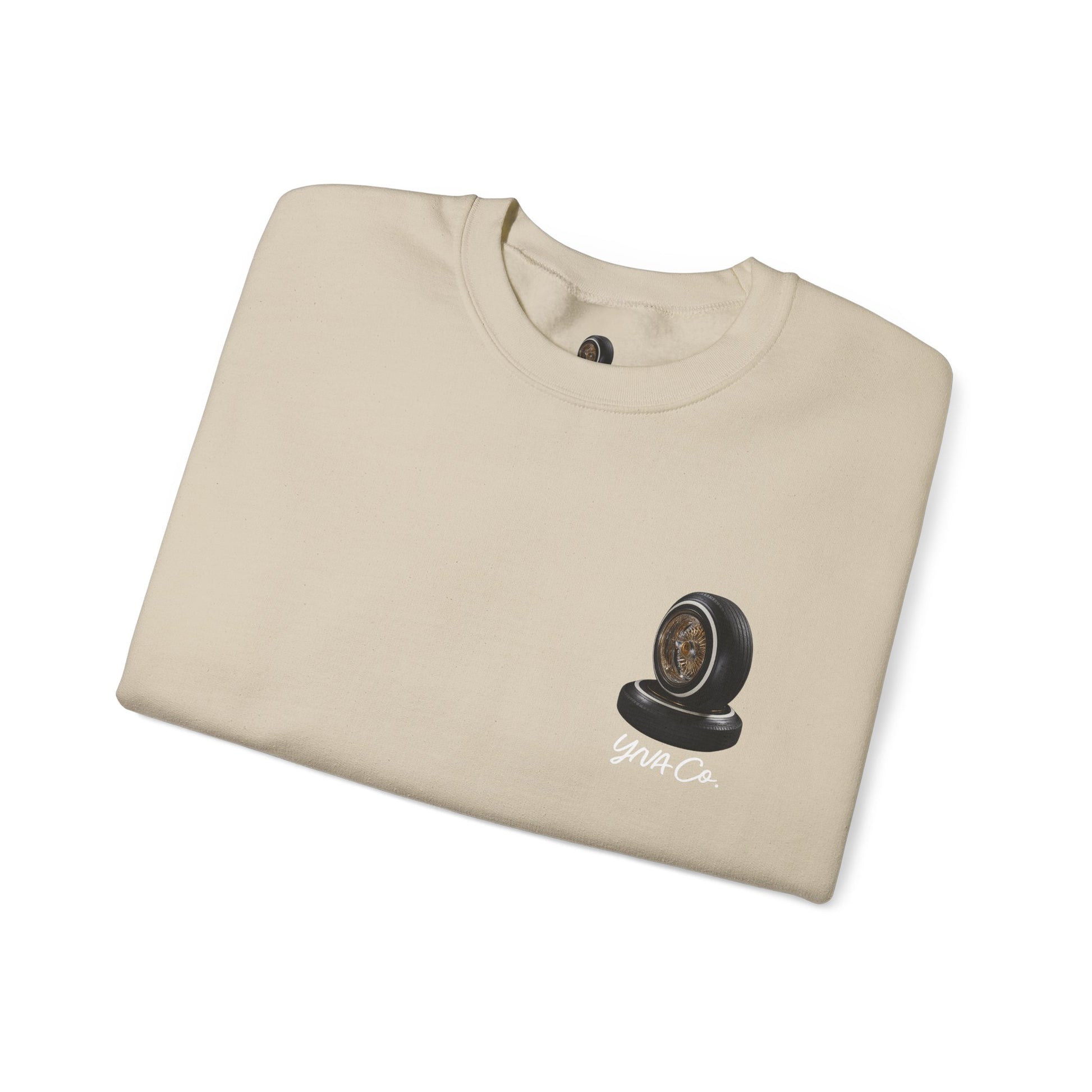 Show love to the streets with the Dayton II Crewneck, featuring a bold graphic of stacked gold Daytons and custom YNA Co. script. This sweater blends timeless lowrider style with everyday comfort. Whether you're cruising the boulevard or posted up with the crew, this hoodie speaks without saying a word.