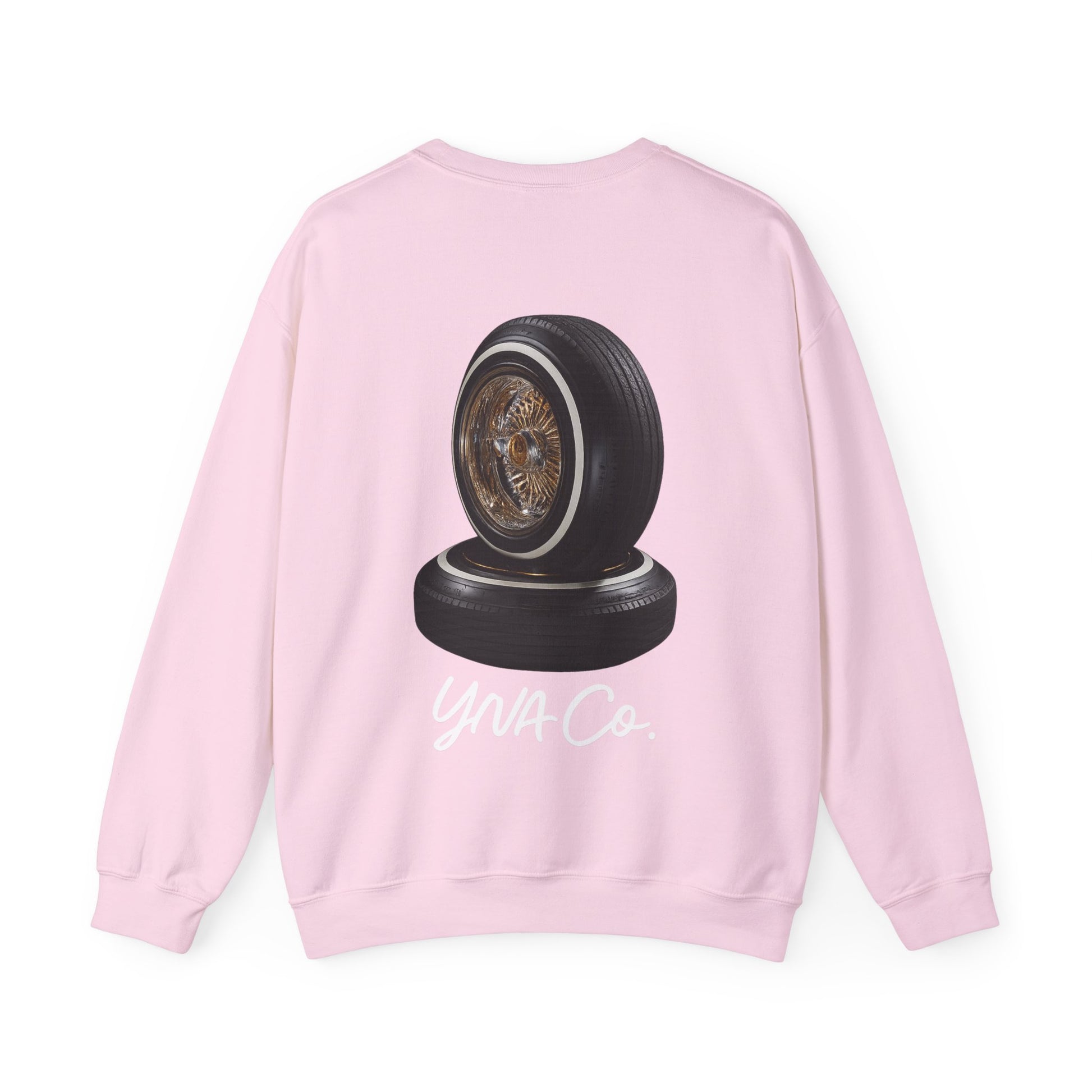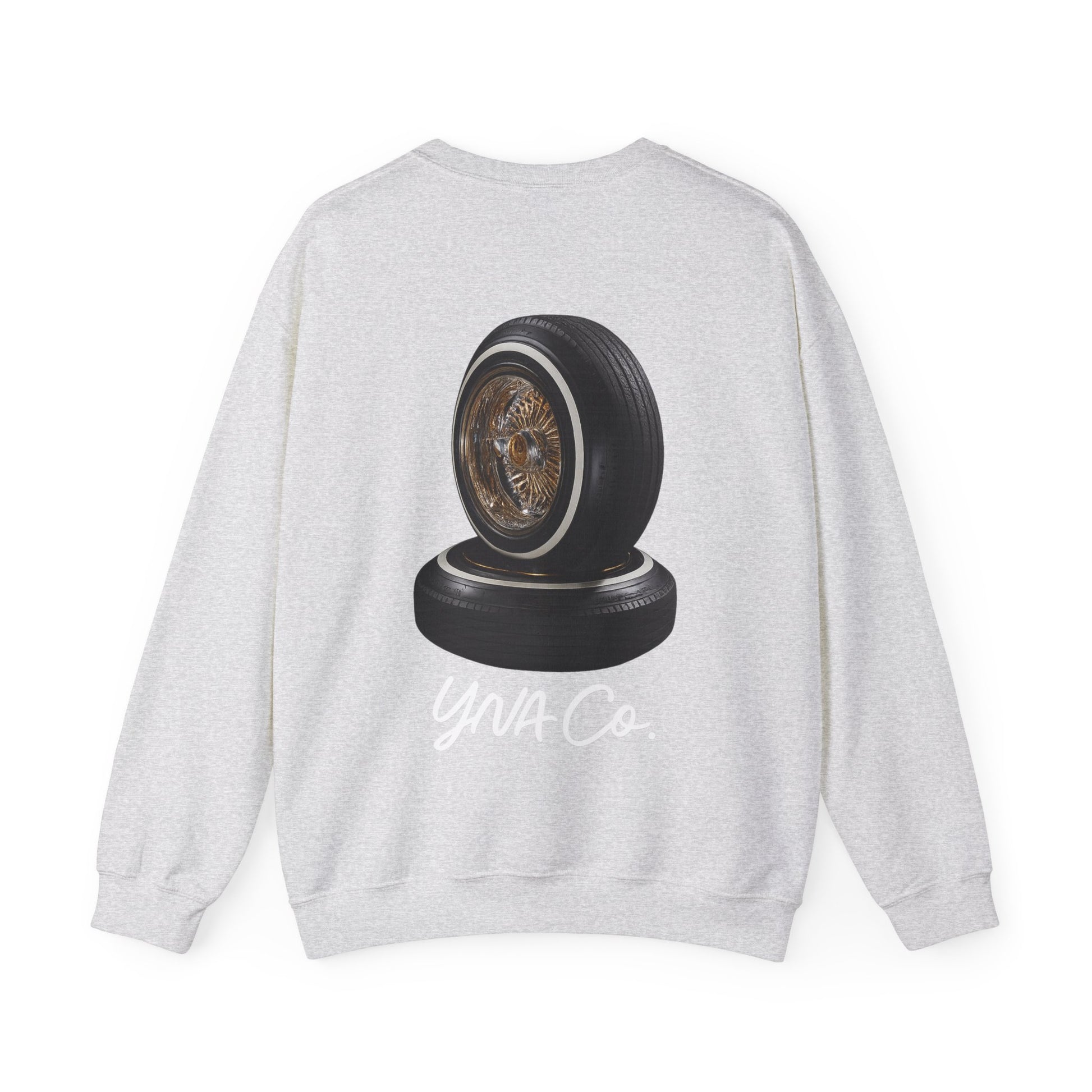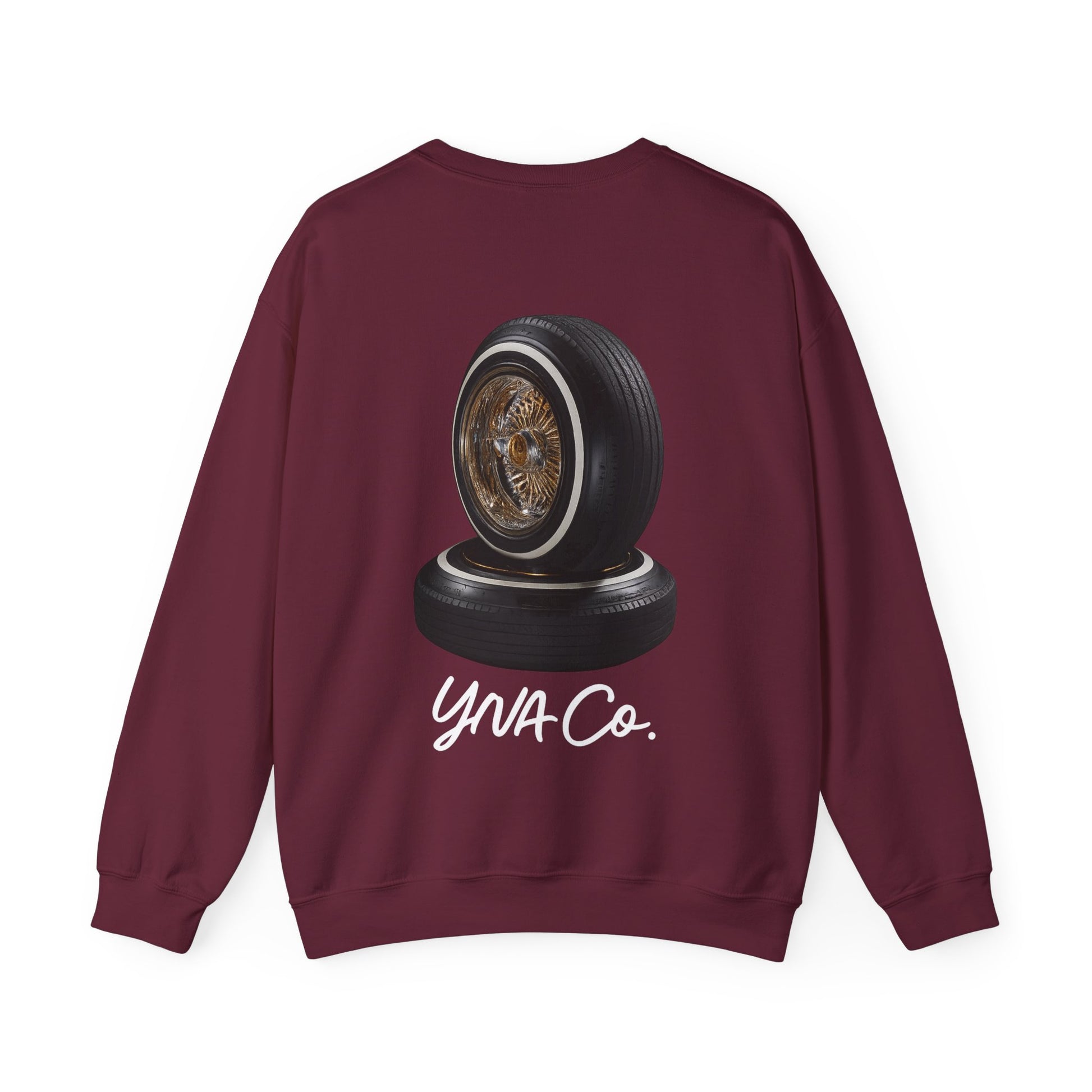 Show love to the streets with the Dayton II Crewneck, featuring a bold graphic of stacked gold Daytons and custom YNA Co. script. This sweater blends timeless lowrider style with everyday comfort. Whether you're cruising the boulevard or posted up with the crew, this hoodie speaks without saying a word.