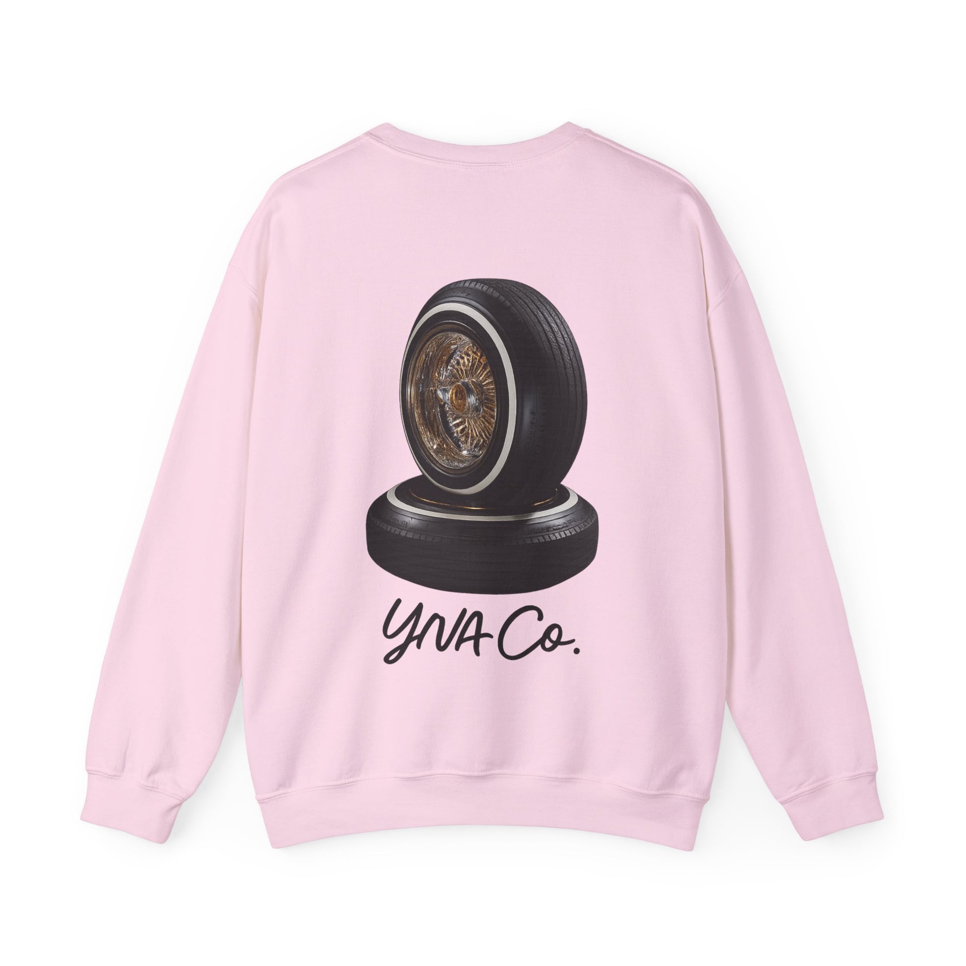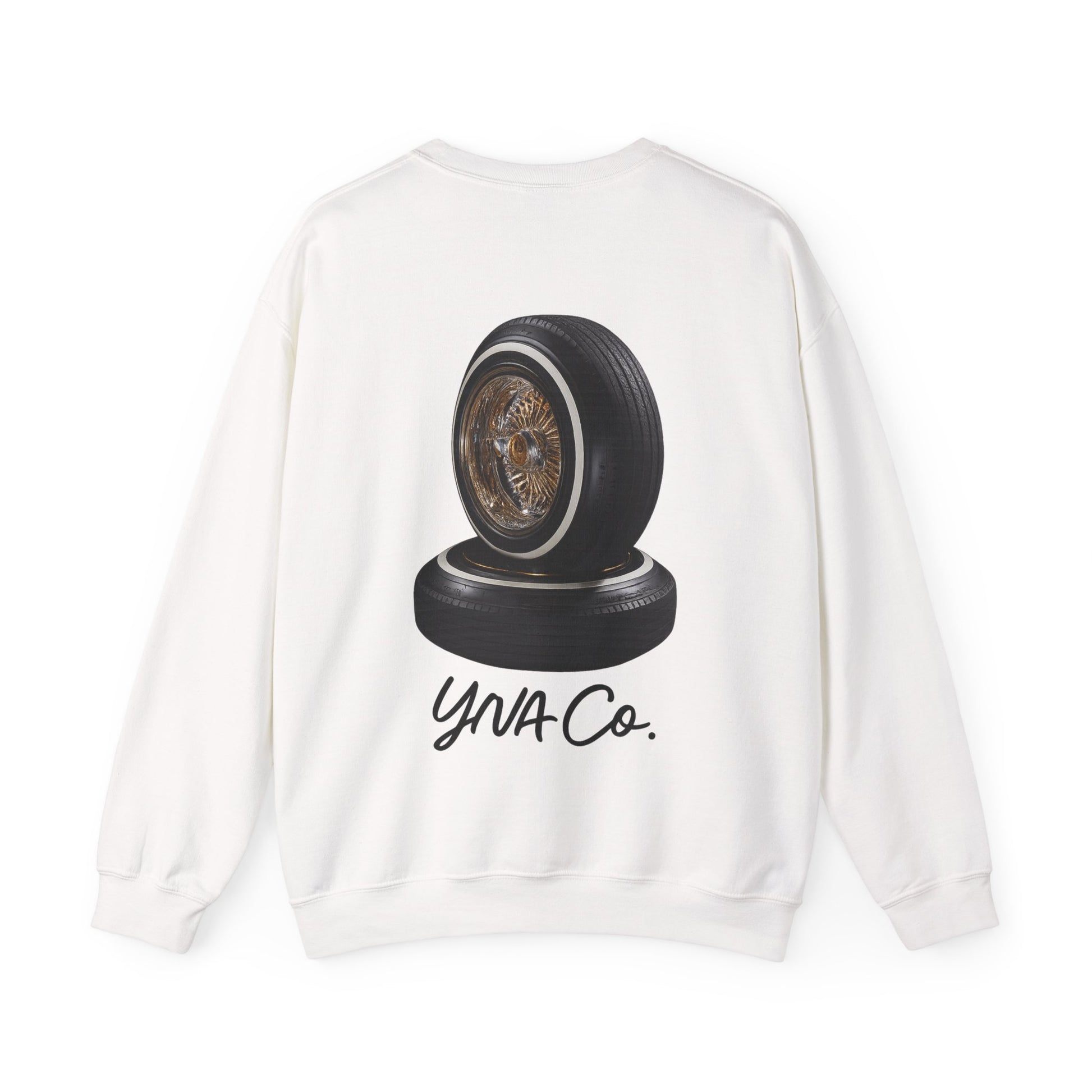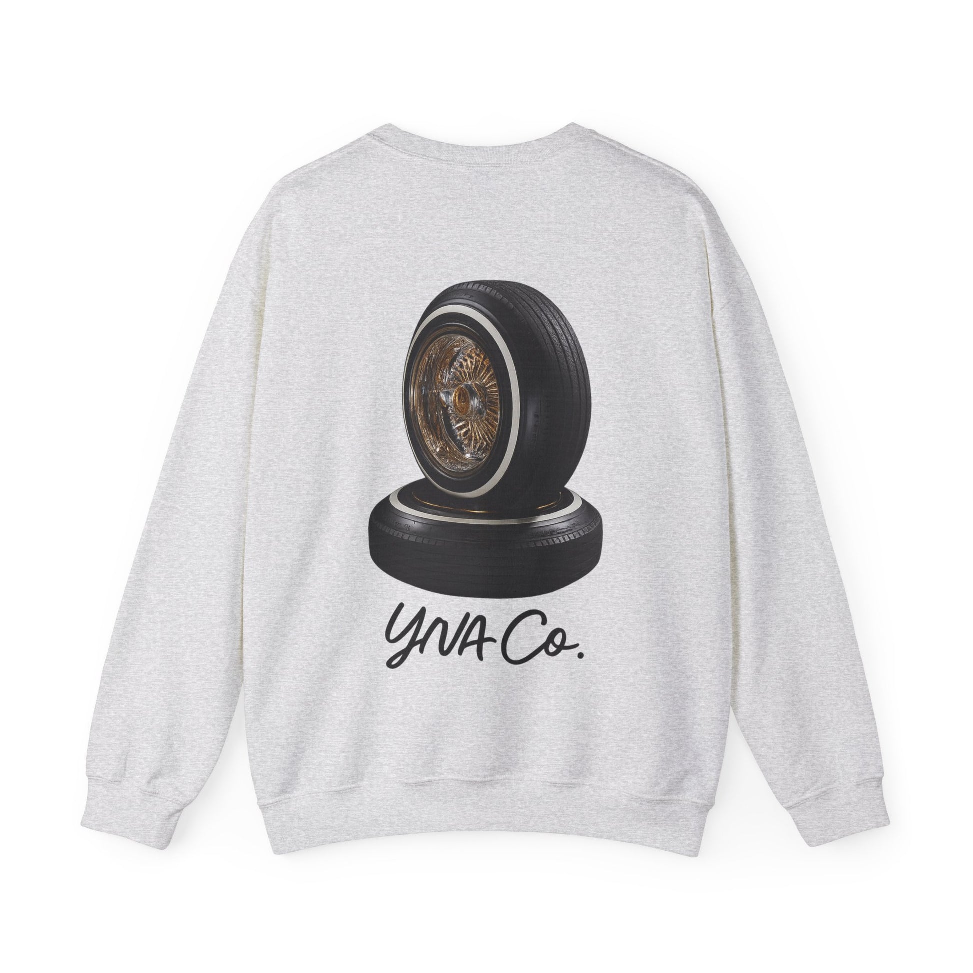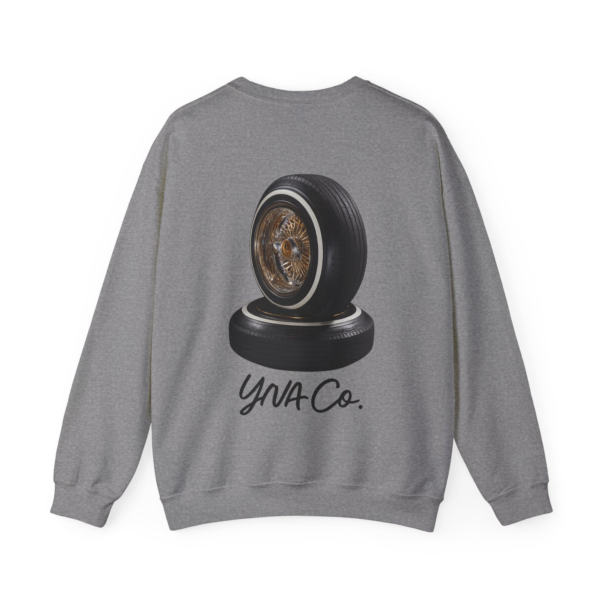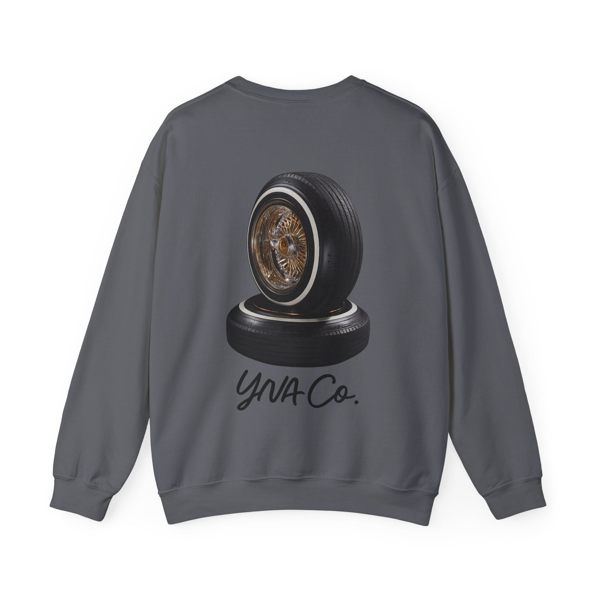 Show love to the streets with the Dayton II Crewneck, featuring a bold graphic of stacked gold Daytons and custom YNA Co. script. This sweater blends timeless lowrider style with everyday comfort. Whether you're cruising the boulevard or posted up with the crew, this hoodie speaks without saying a word.