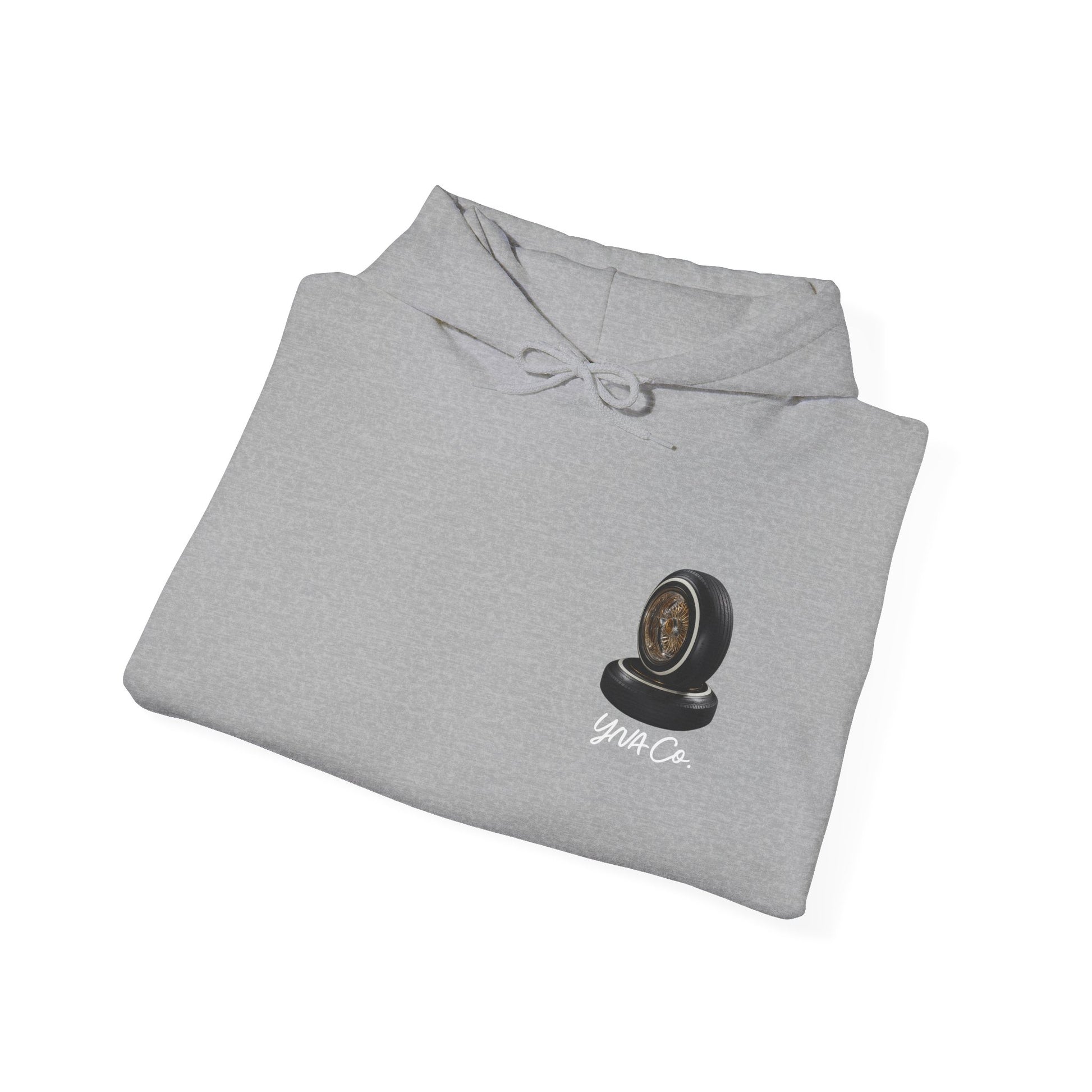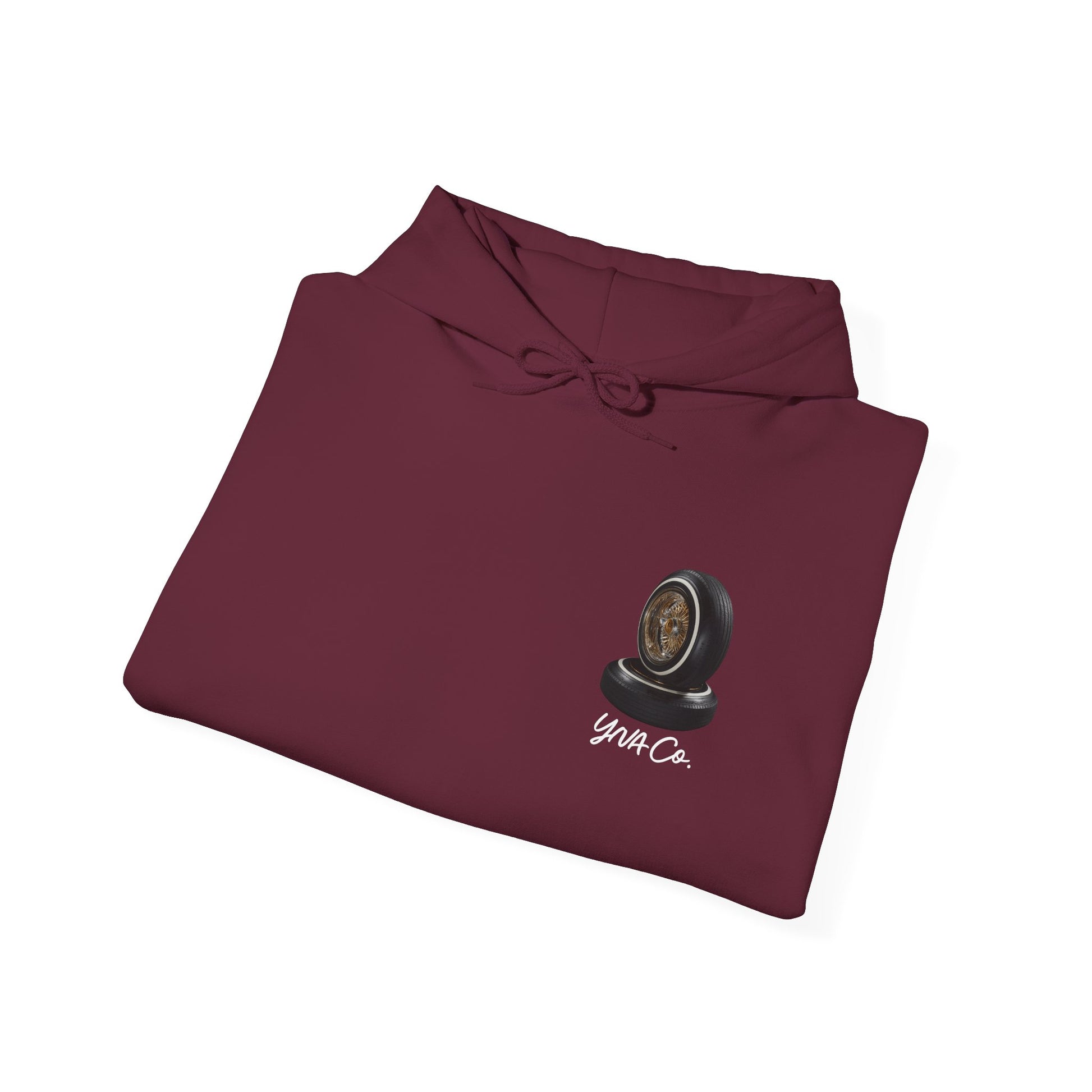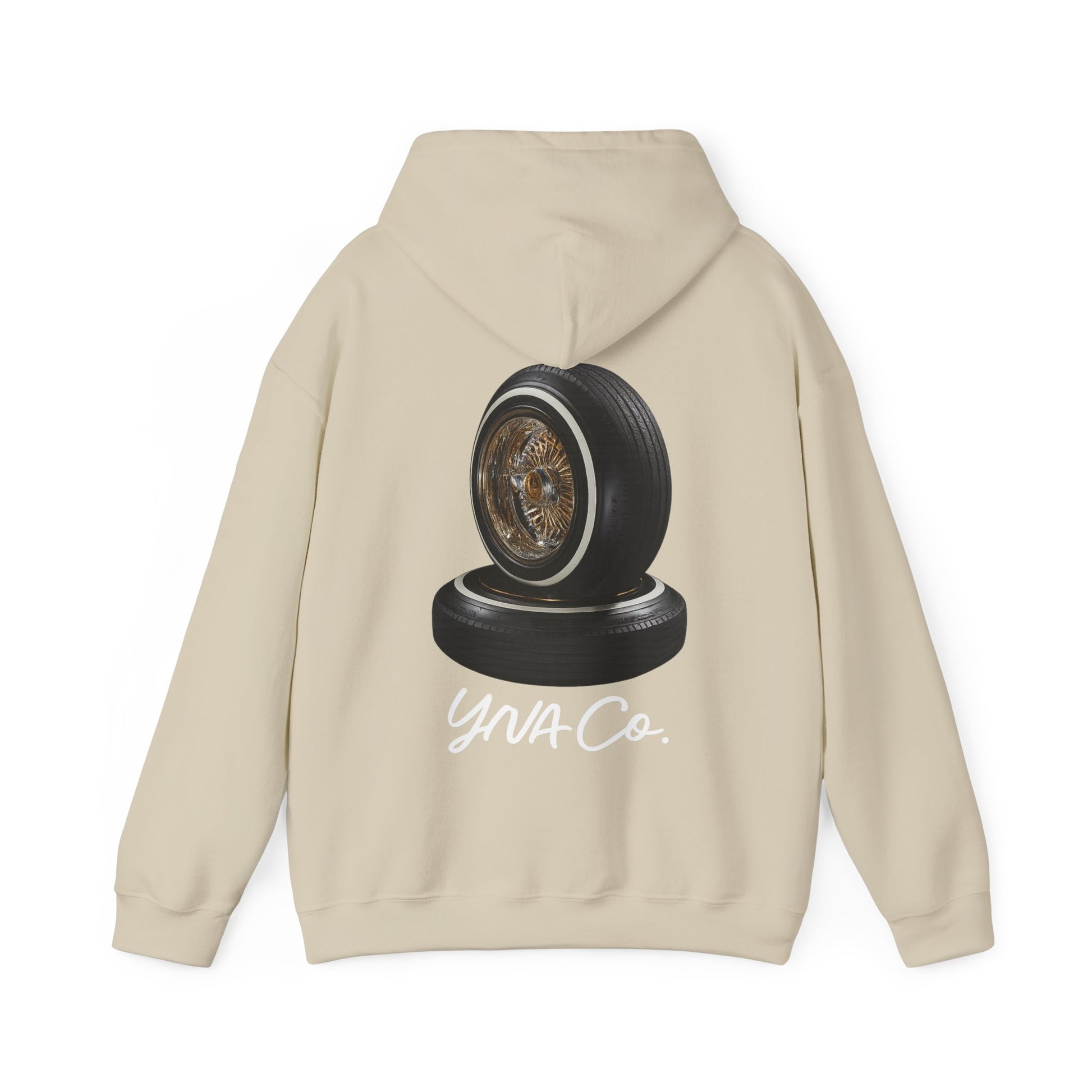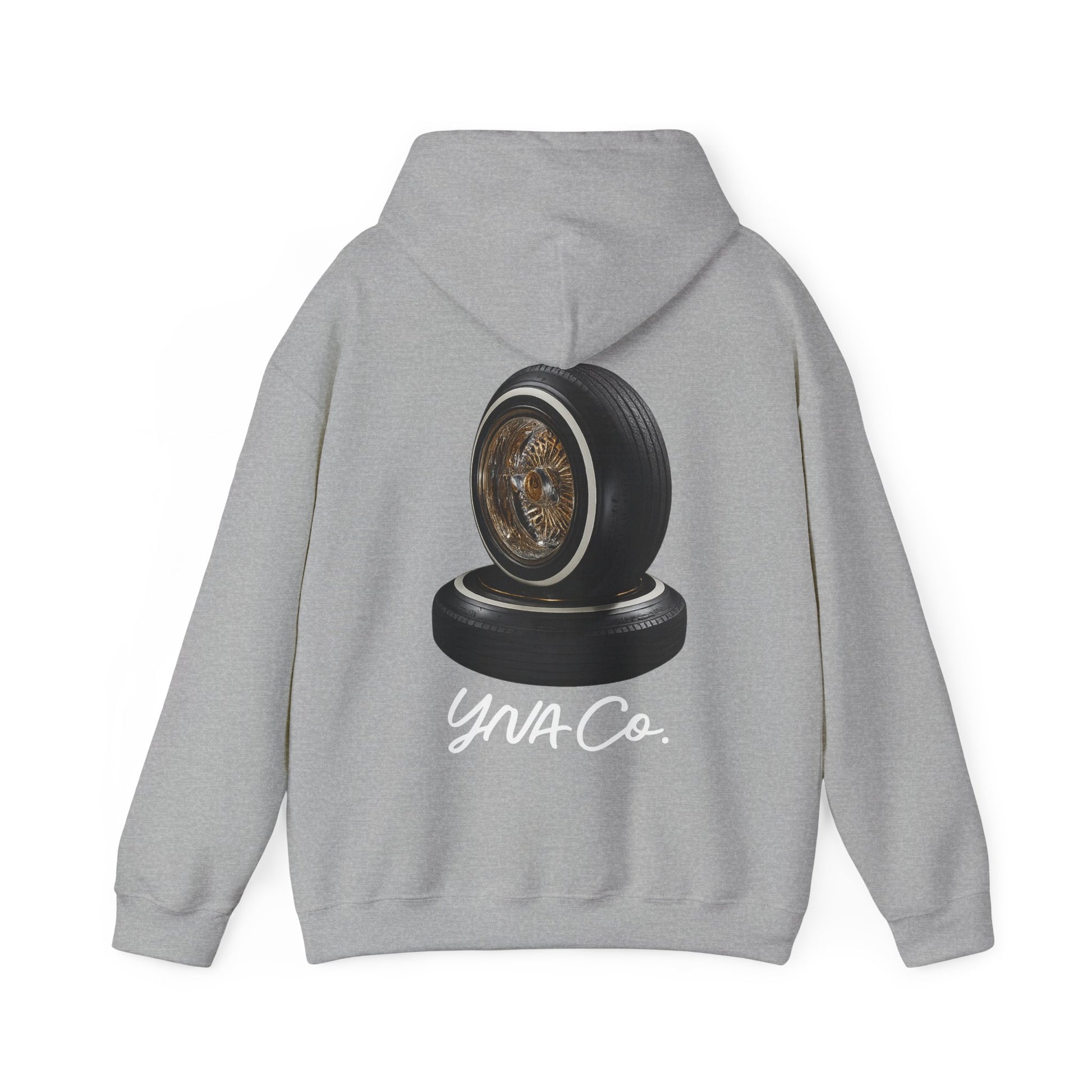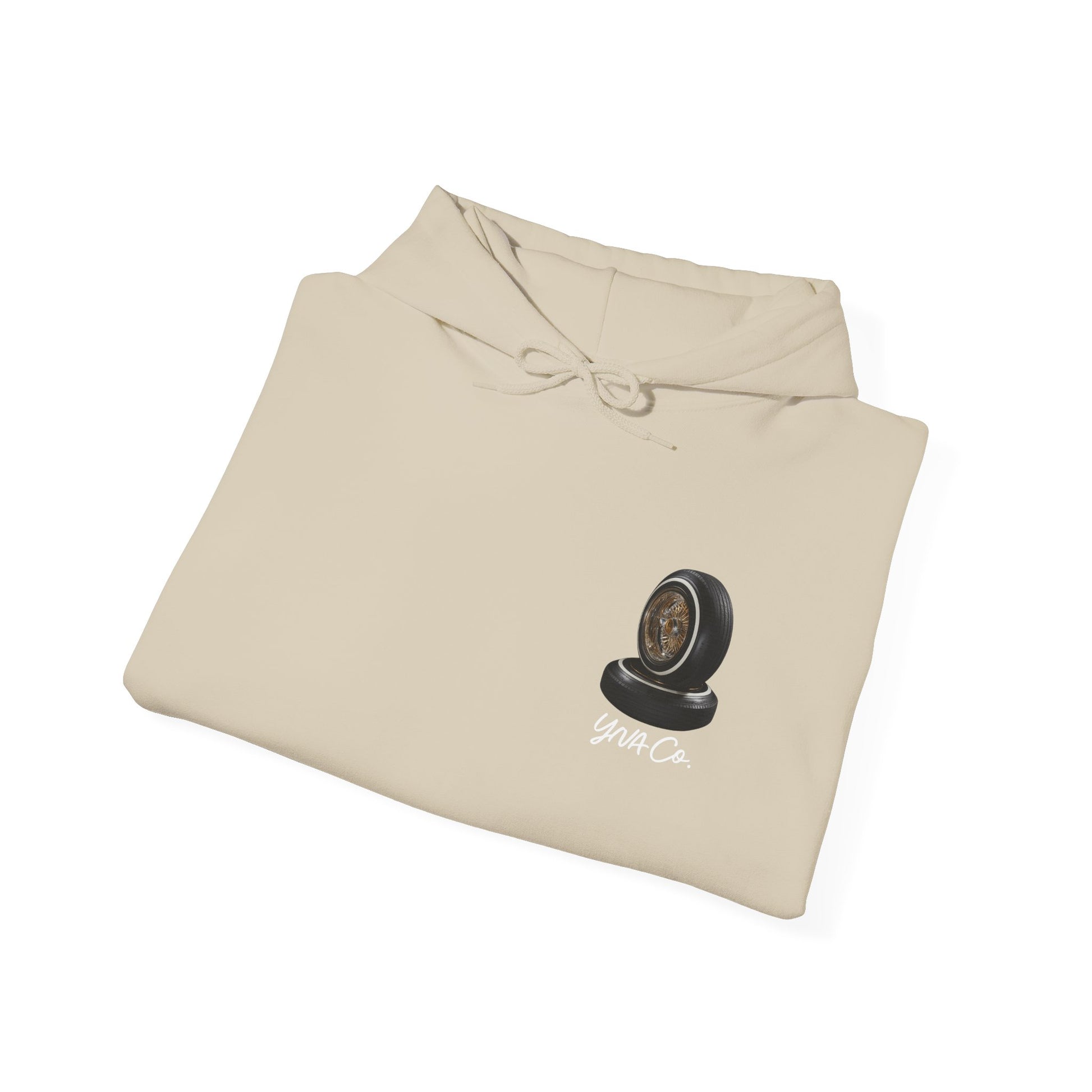 Show love to the streets with the Dayton II Hoodie, featuring a bold graphic of stacked gold Daytons and custom YNA Co. script. This sweater blends timeless lowrider style with everyday comfort. Whether you're cruising the boulevard or posted up with the crew, this hoodie speaks without saying a word.