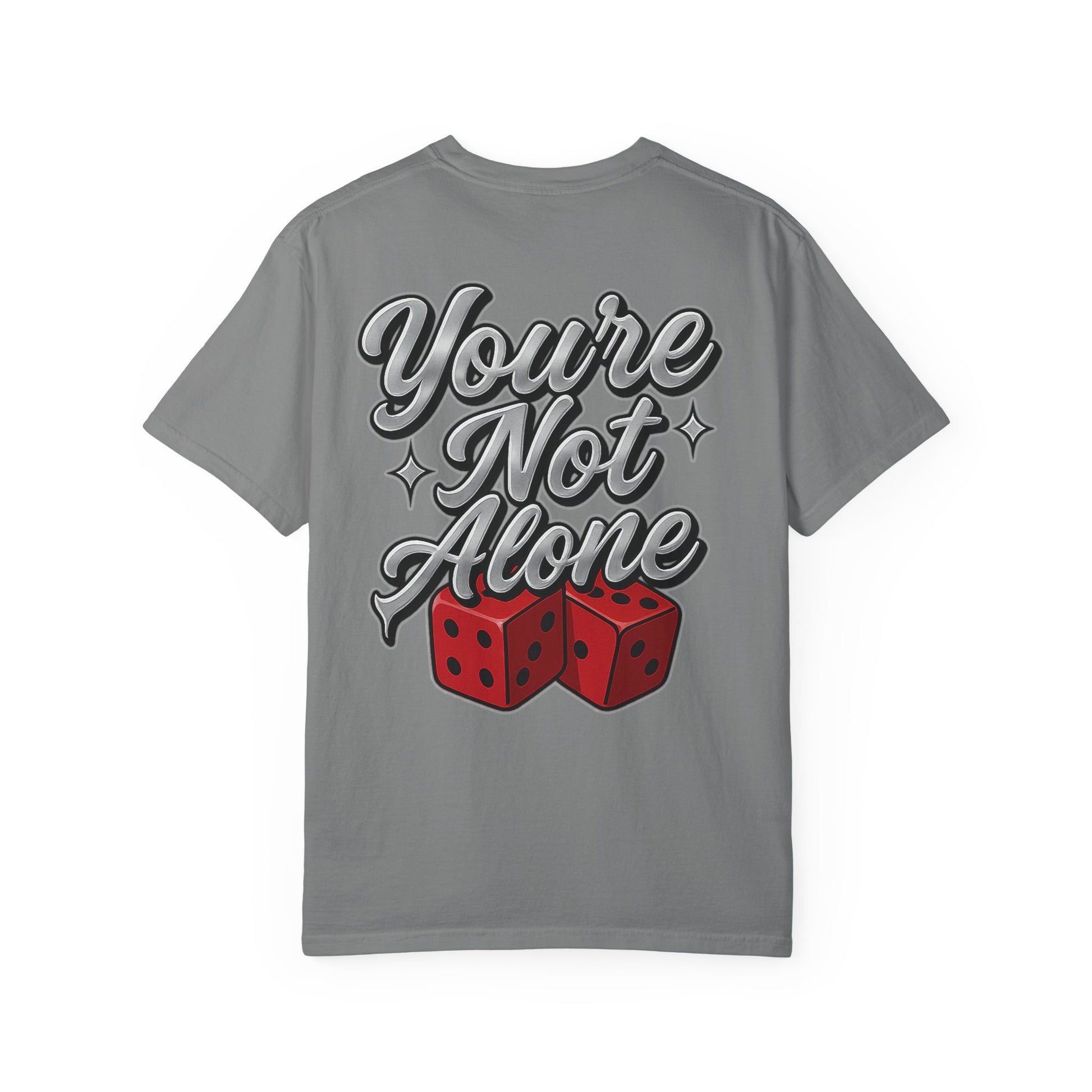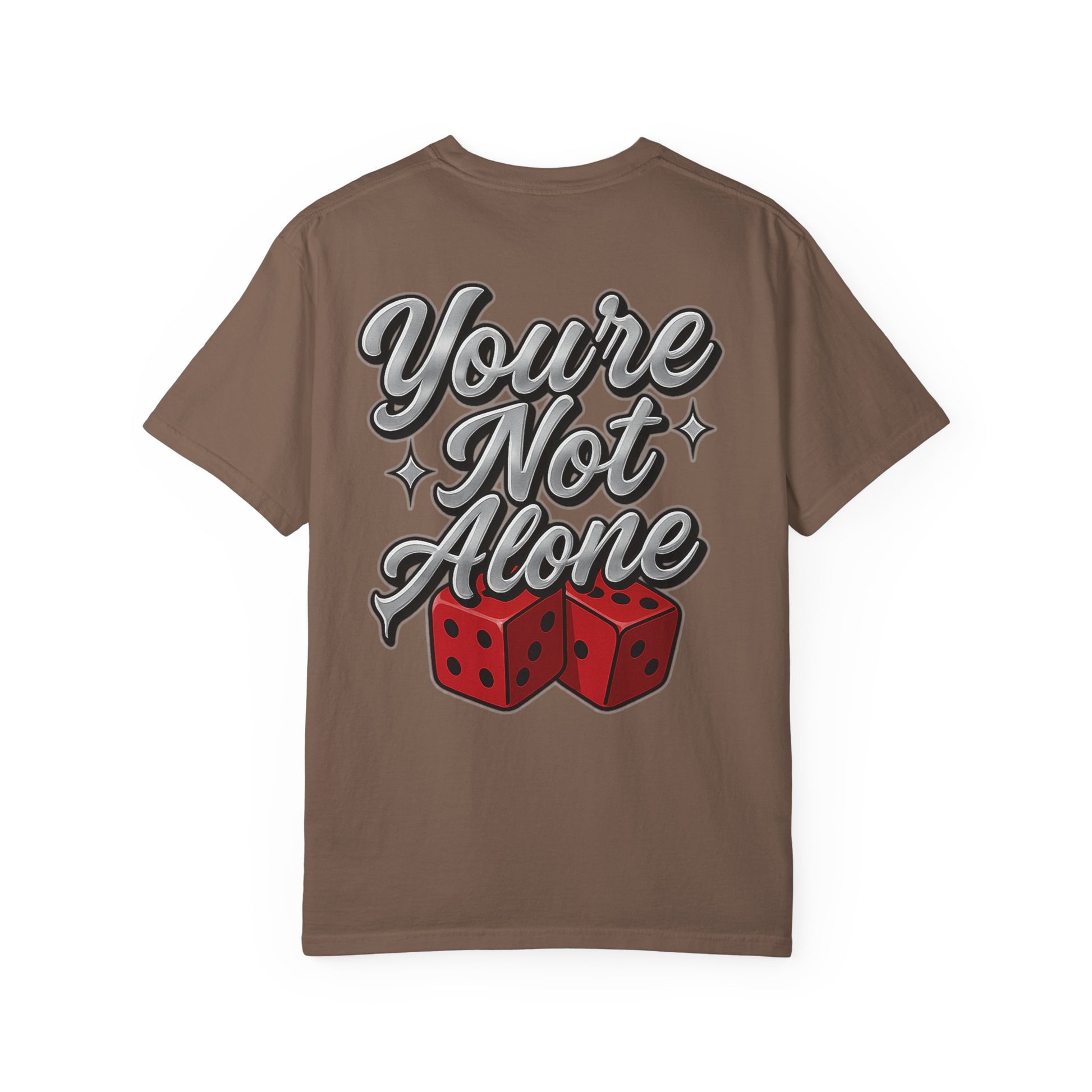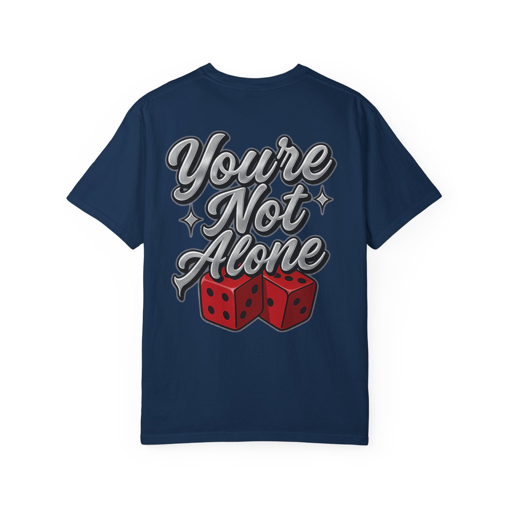 This isn’t just a shirt—it’s a message. Designed for those who carry style and purpose on their sleeve, this unisex garment-dyed tee features a bold graphic that blends Chicano-inspired flair with raw honesty. Whether you’re out making moves or laying low, it’s a daily reminder that no one walks this life alone.
