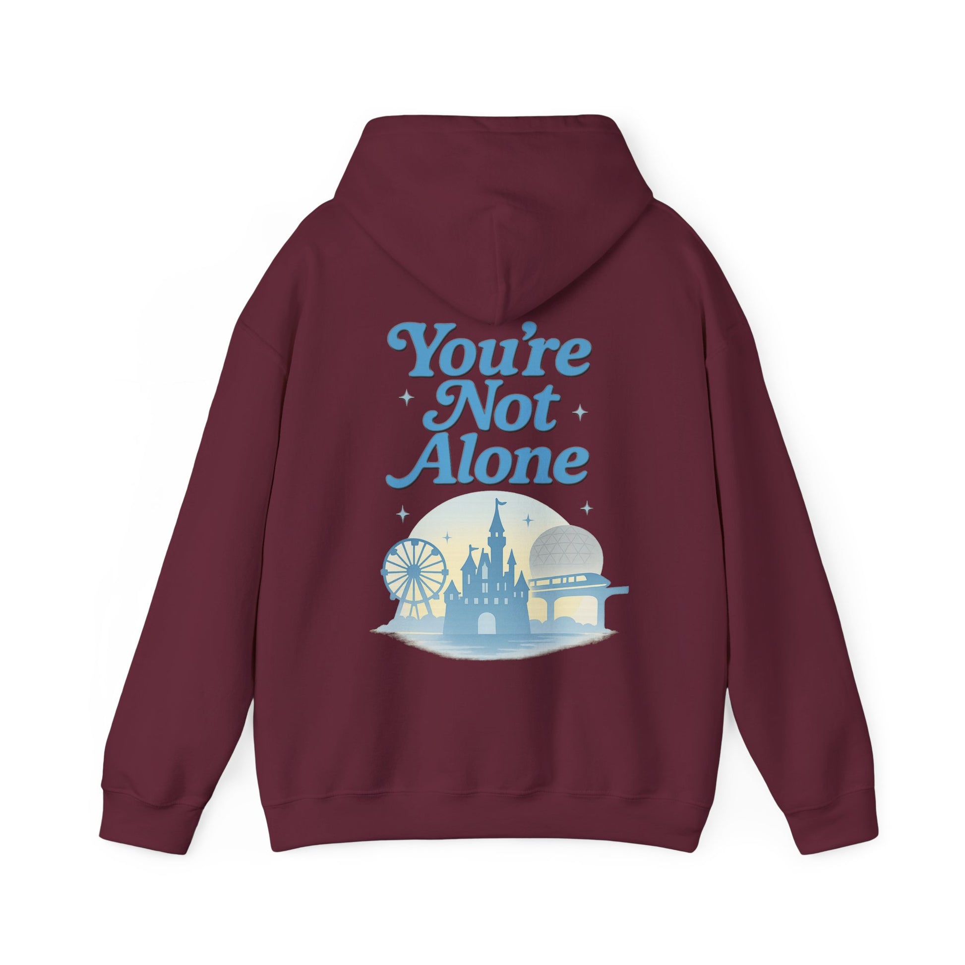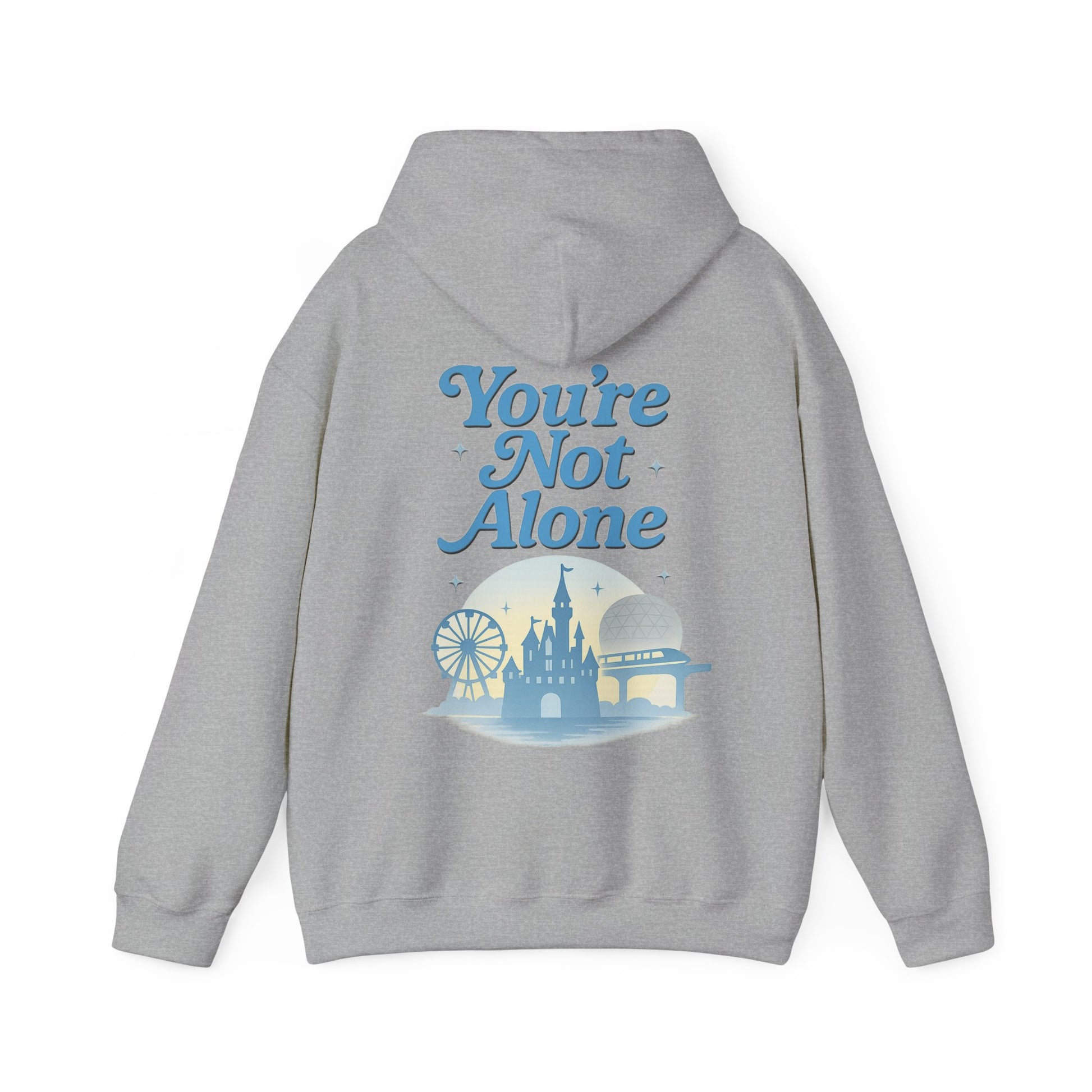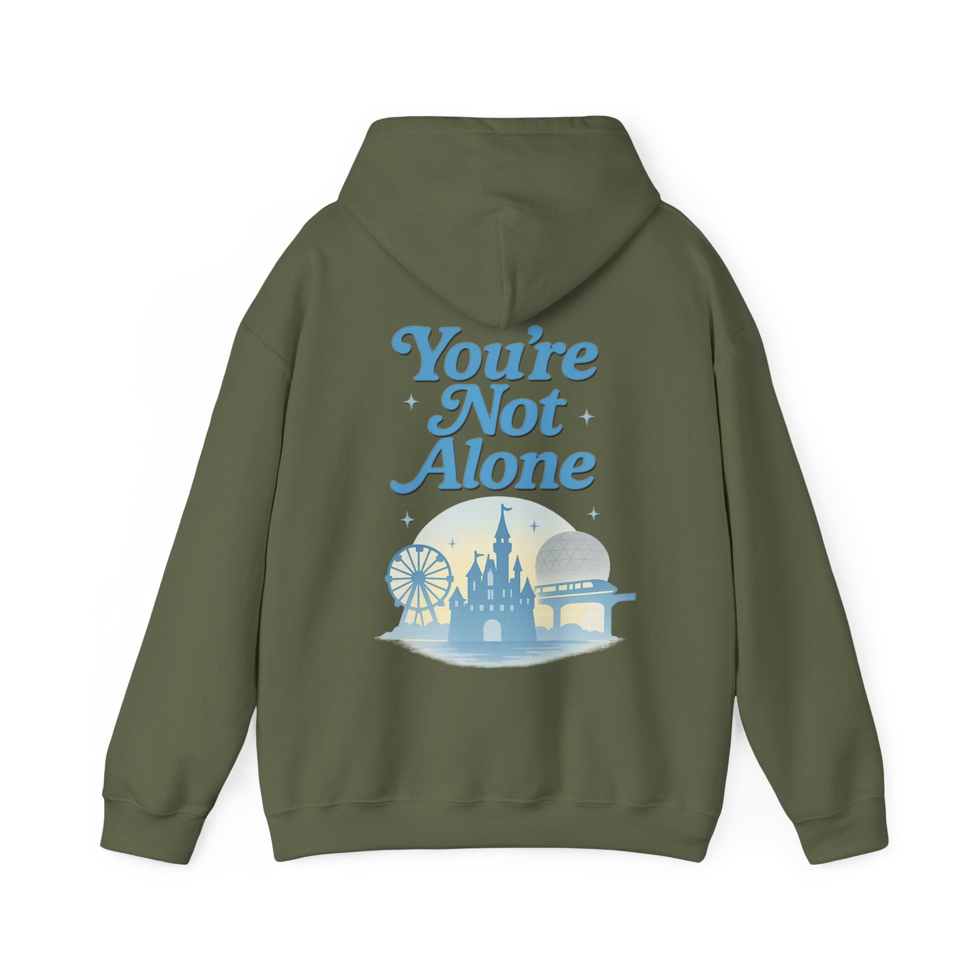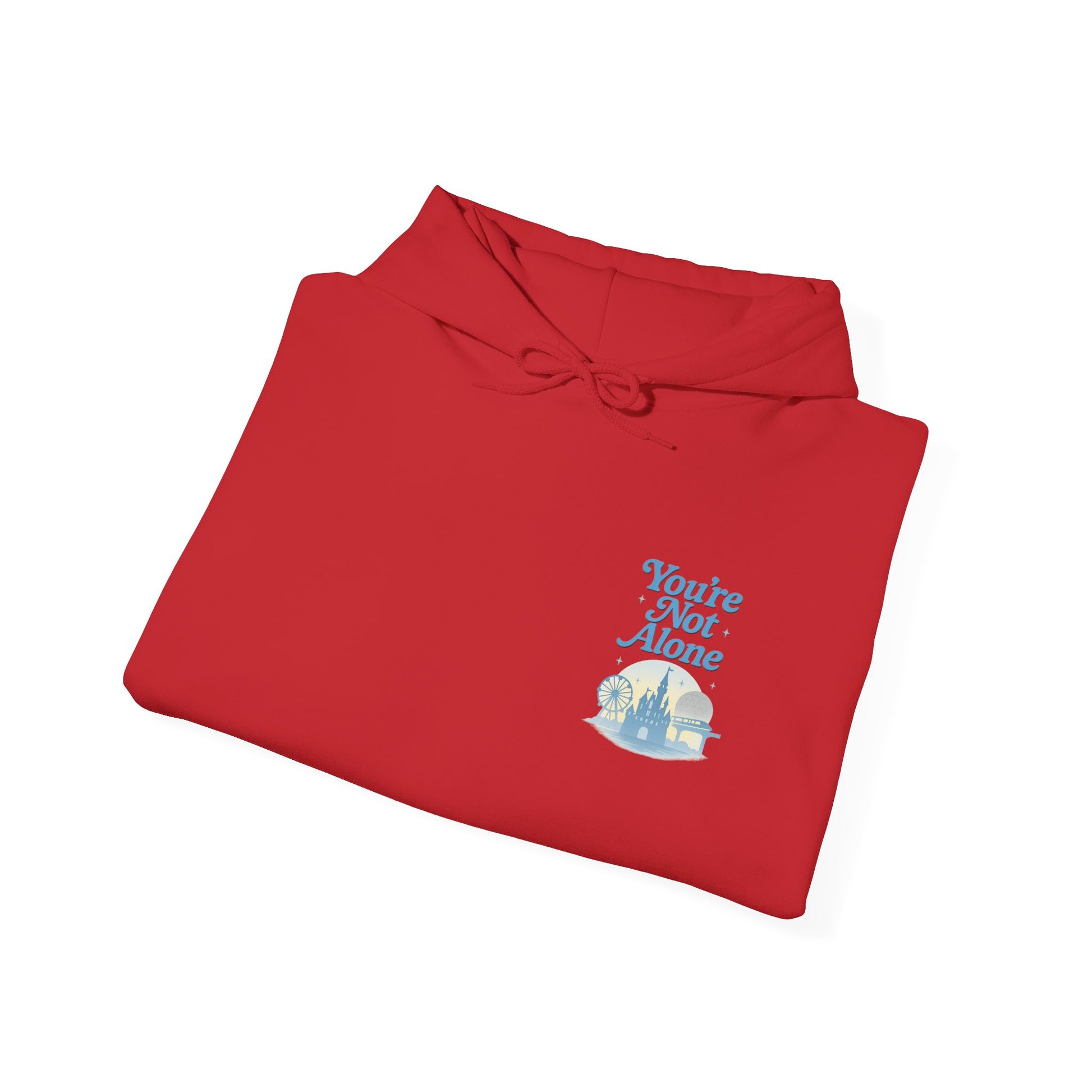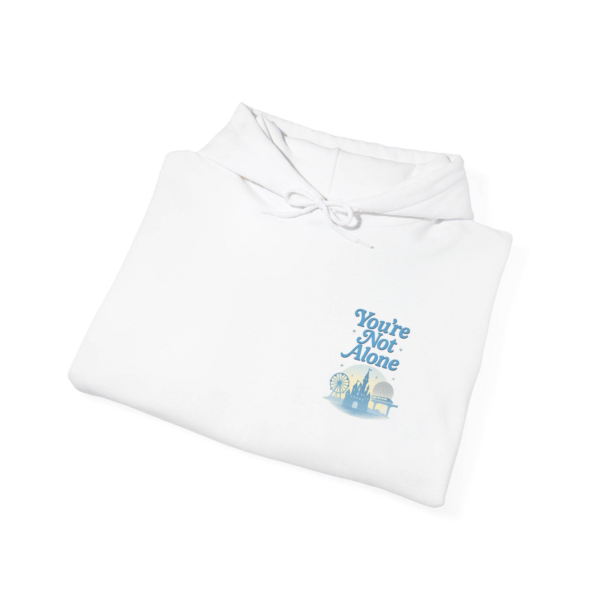 Inspired by theme park magic and childhood wonder, this hoodie features a whimsical castle, monorail, and Ferris wheel framed under starlit skies. It’s not just about a place — it’s about the feeling of hope, healing, and finding light even in the dark.