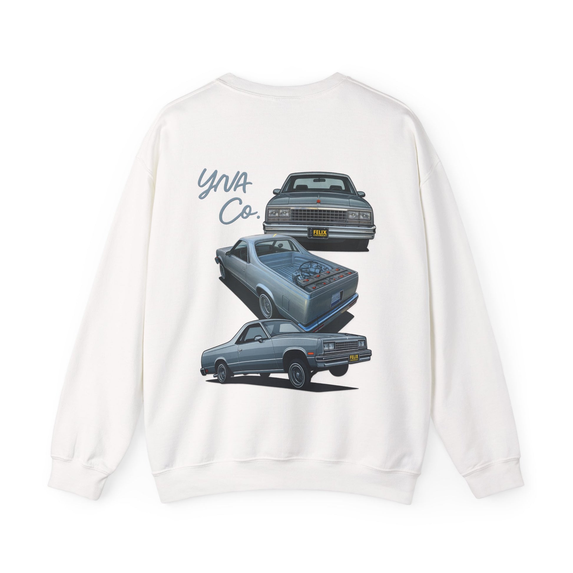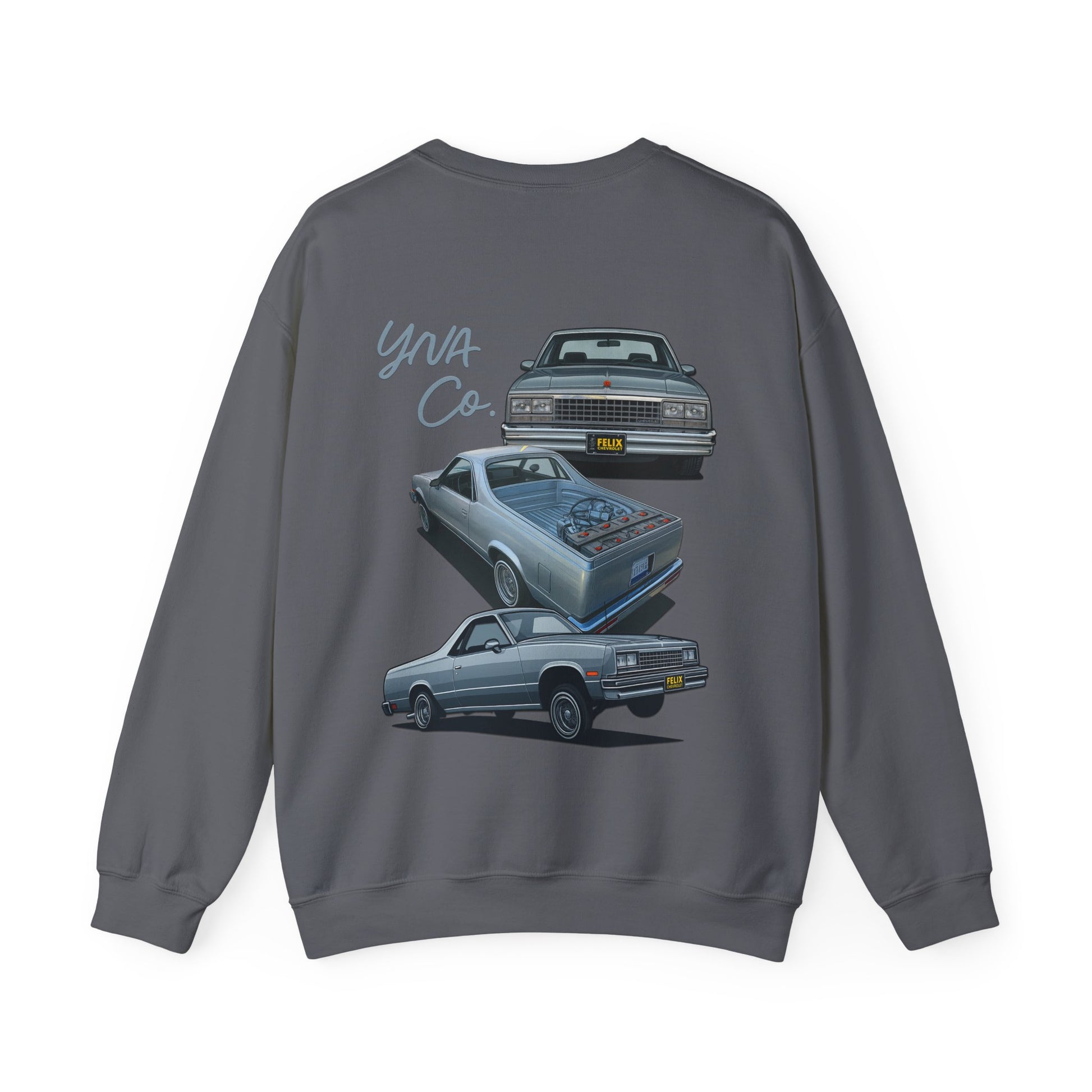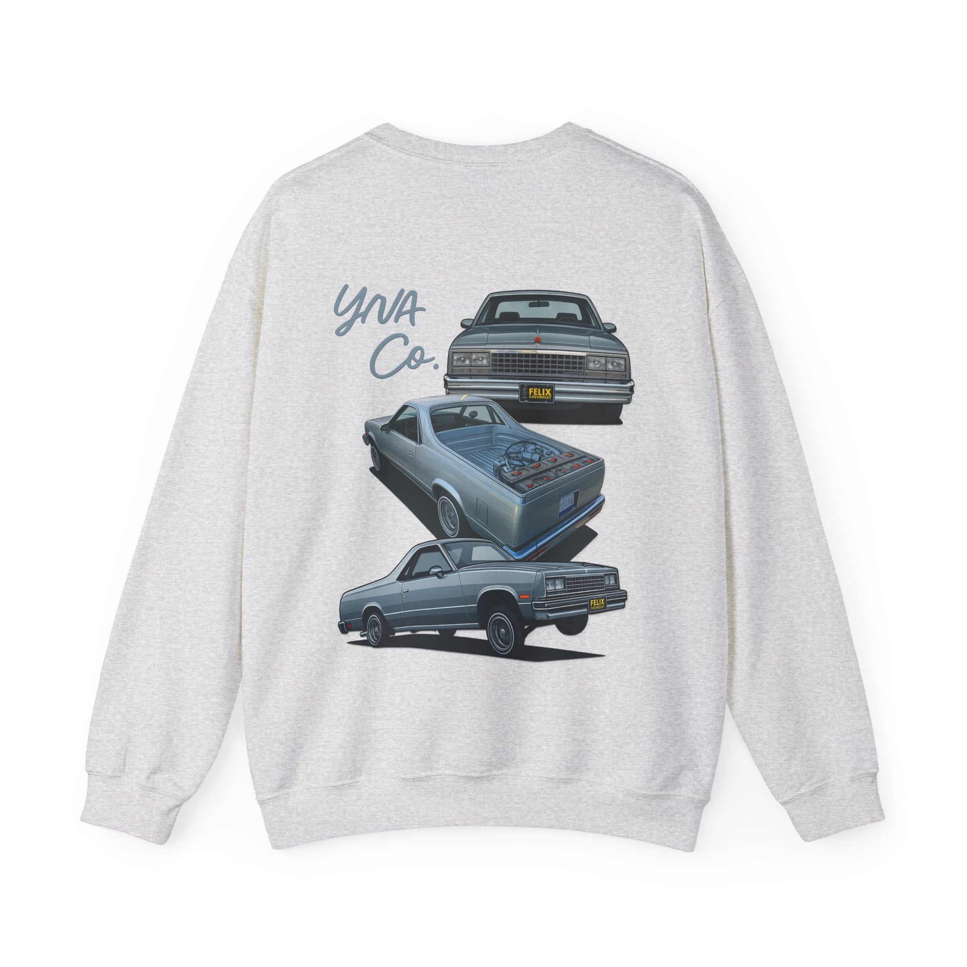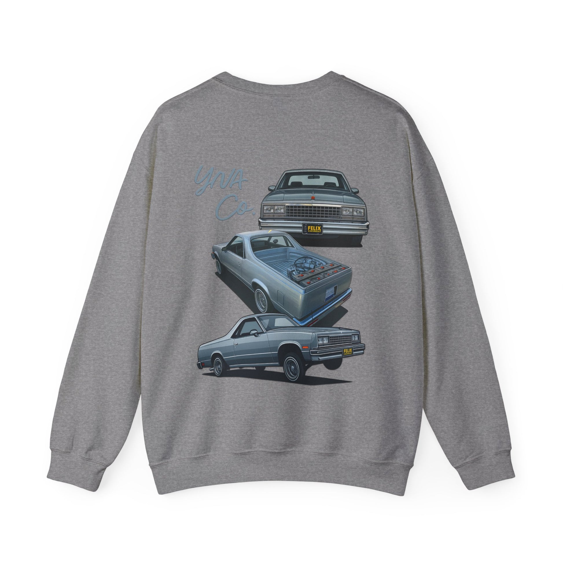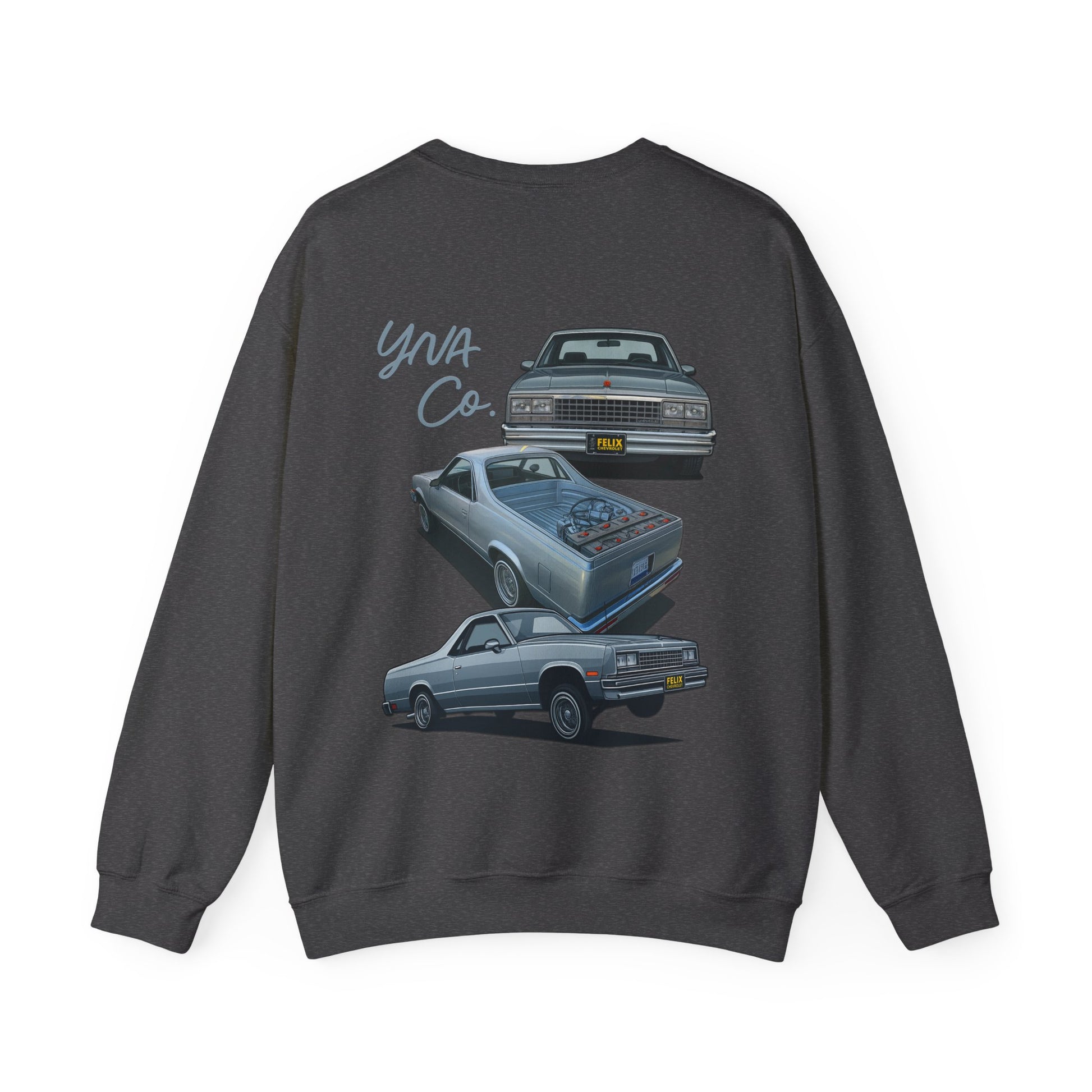 Rev up your style with the Lowrider Elco Crewneck Sweater— a tribute to West Coast car culture, built for those who ride with pride. Featuring a fully illustrated 80s El Camino on hydraulics, custom batteries, and chrome detail, this sweater captures the soul of the boulevard.