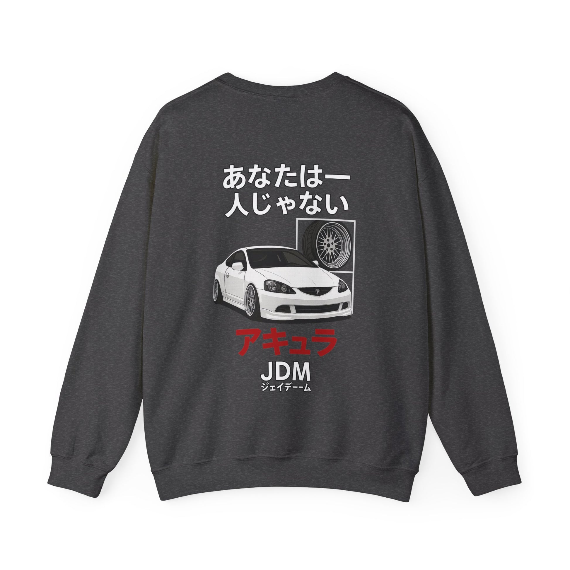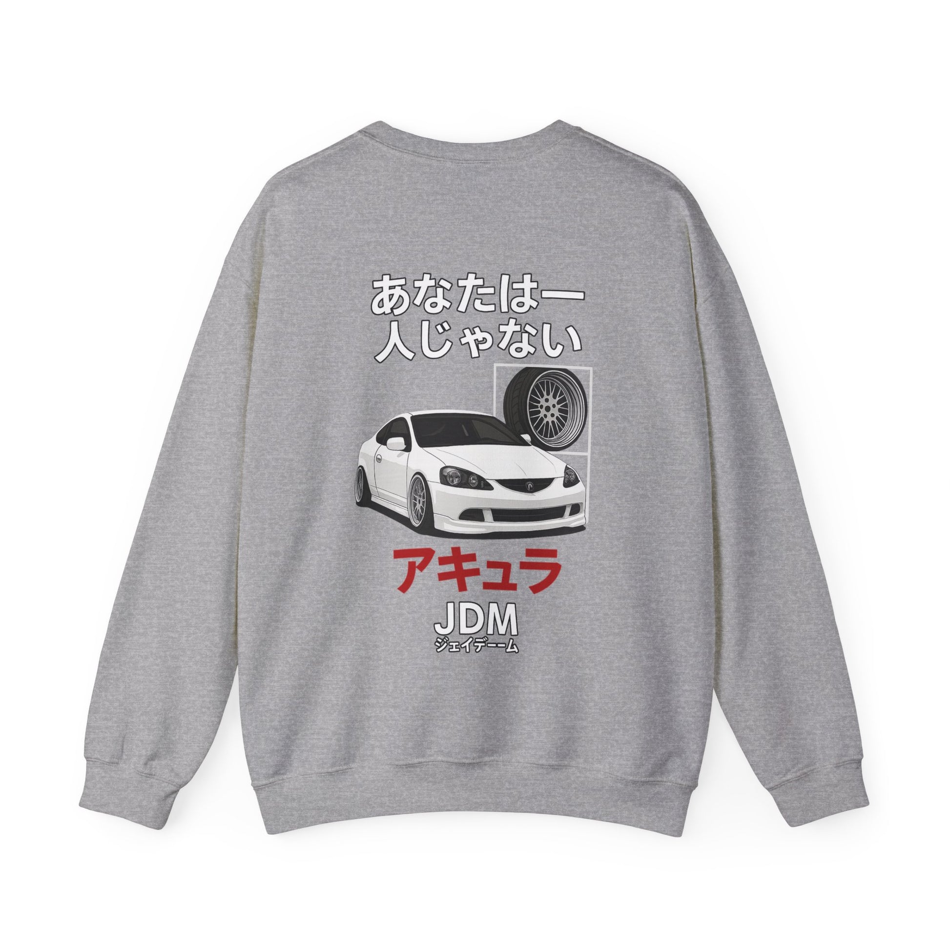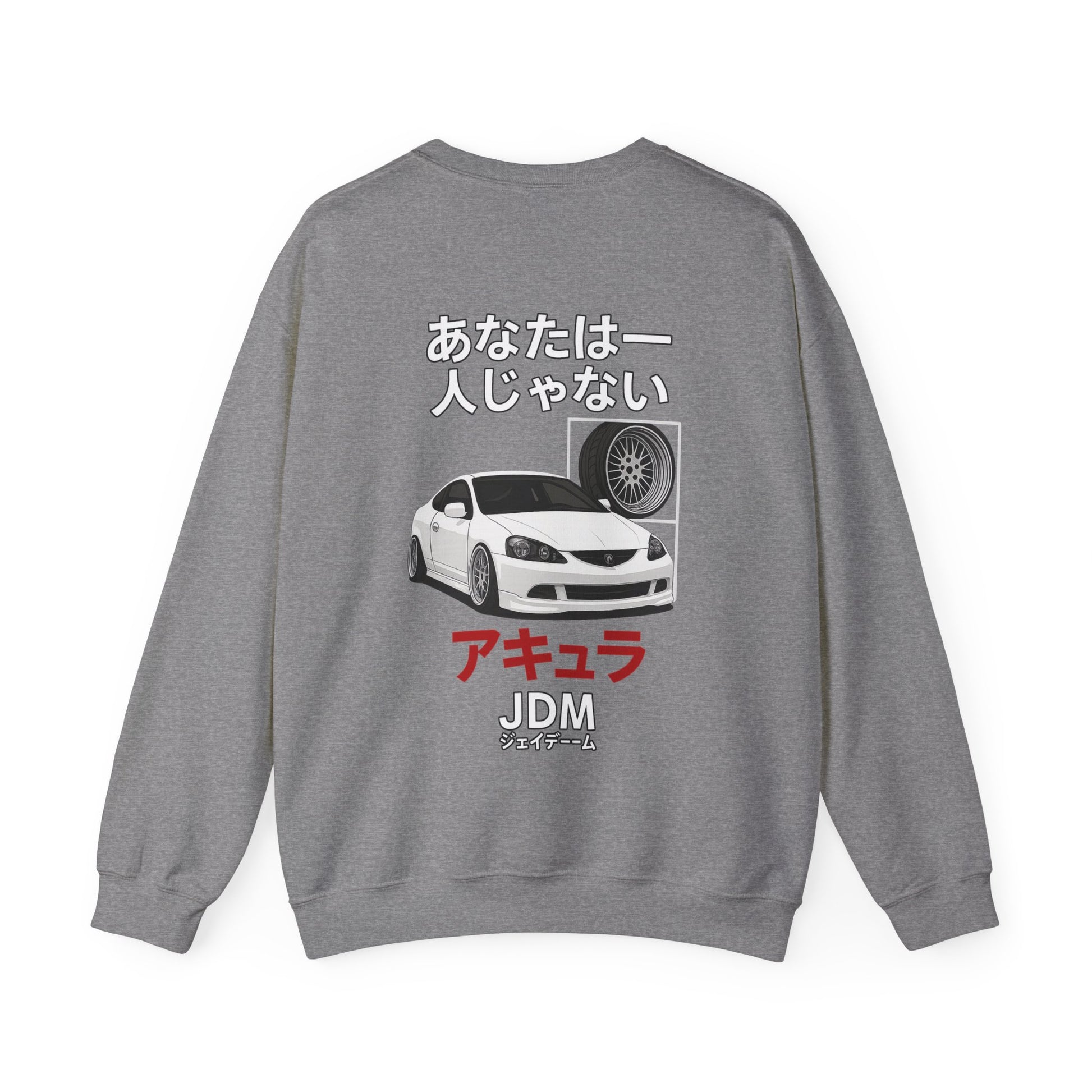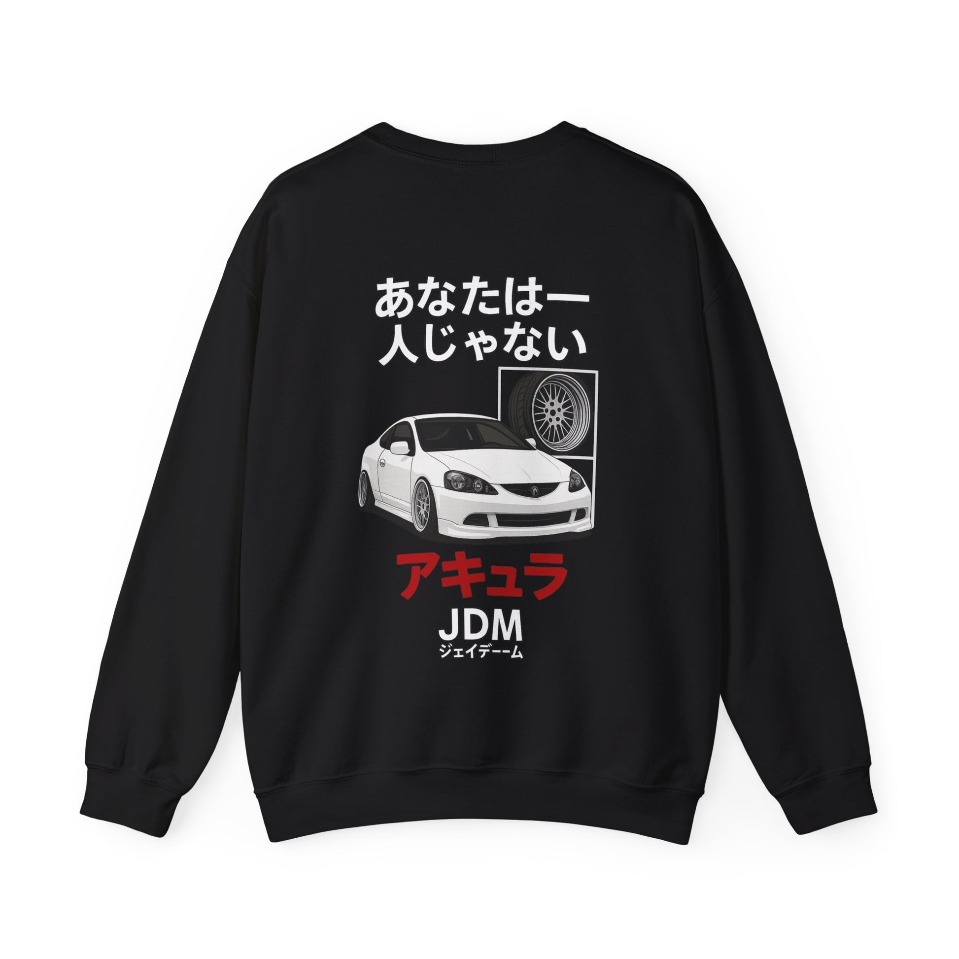 This isn’t just a sweater — it’s a statement. Featuring a slammed DC5 with perfect camber and a bold red finish, this piece blends Japanese car culture with the deeper message: あなたは一人じゃない ("You're not alone").