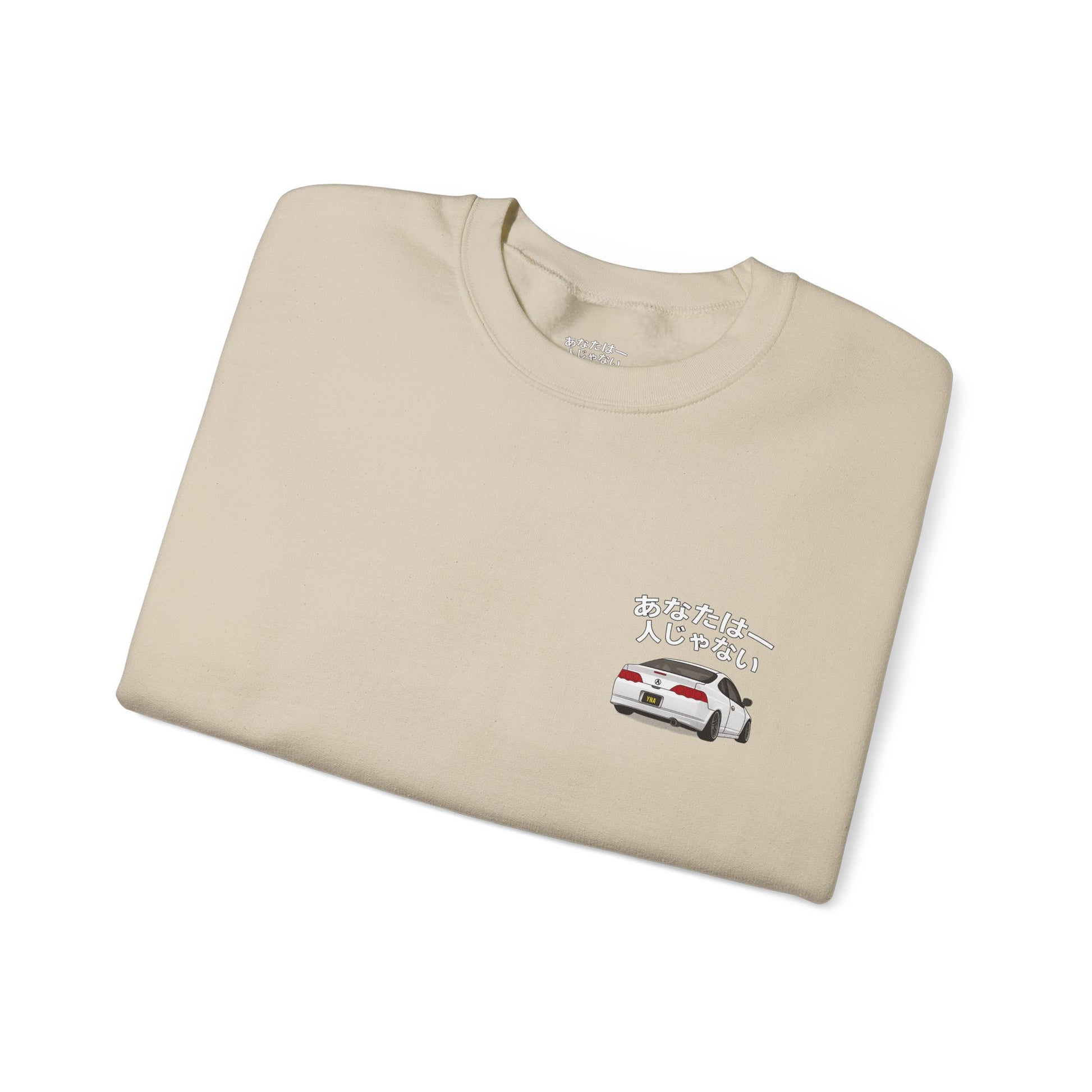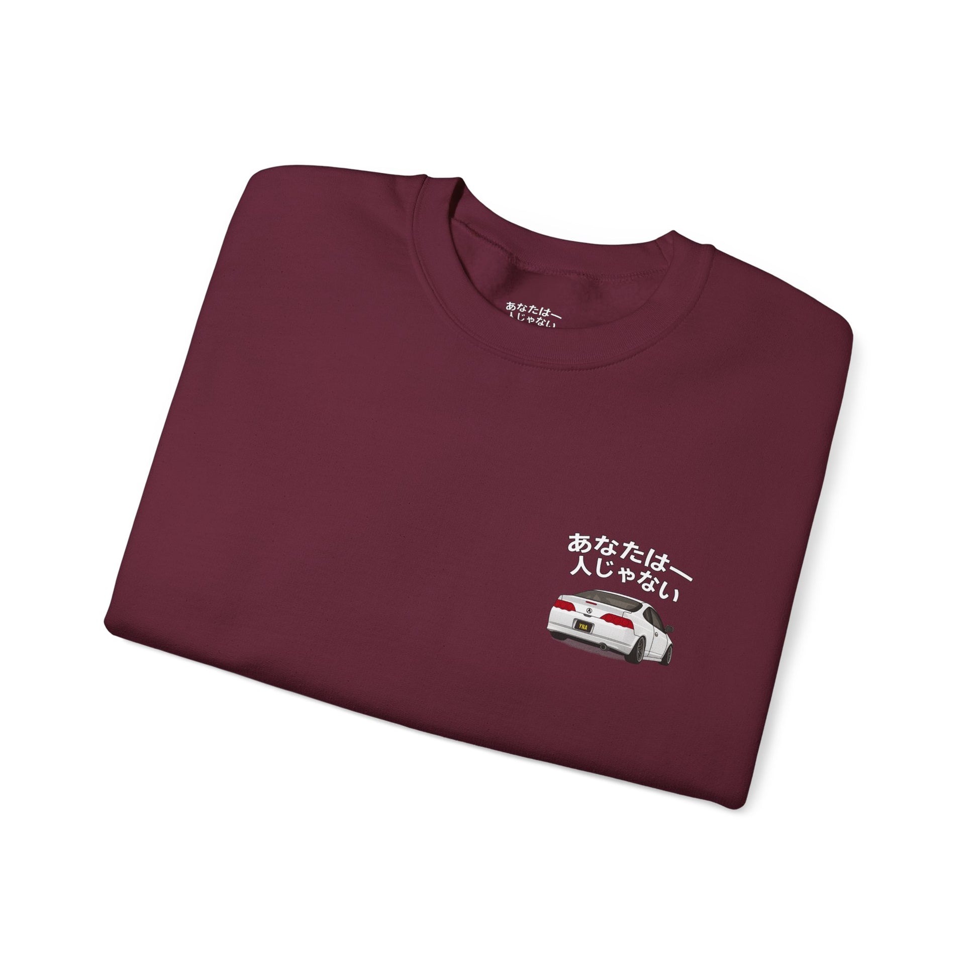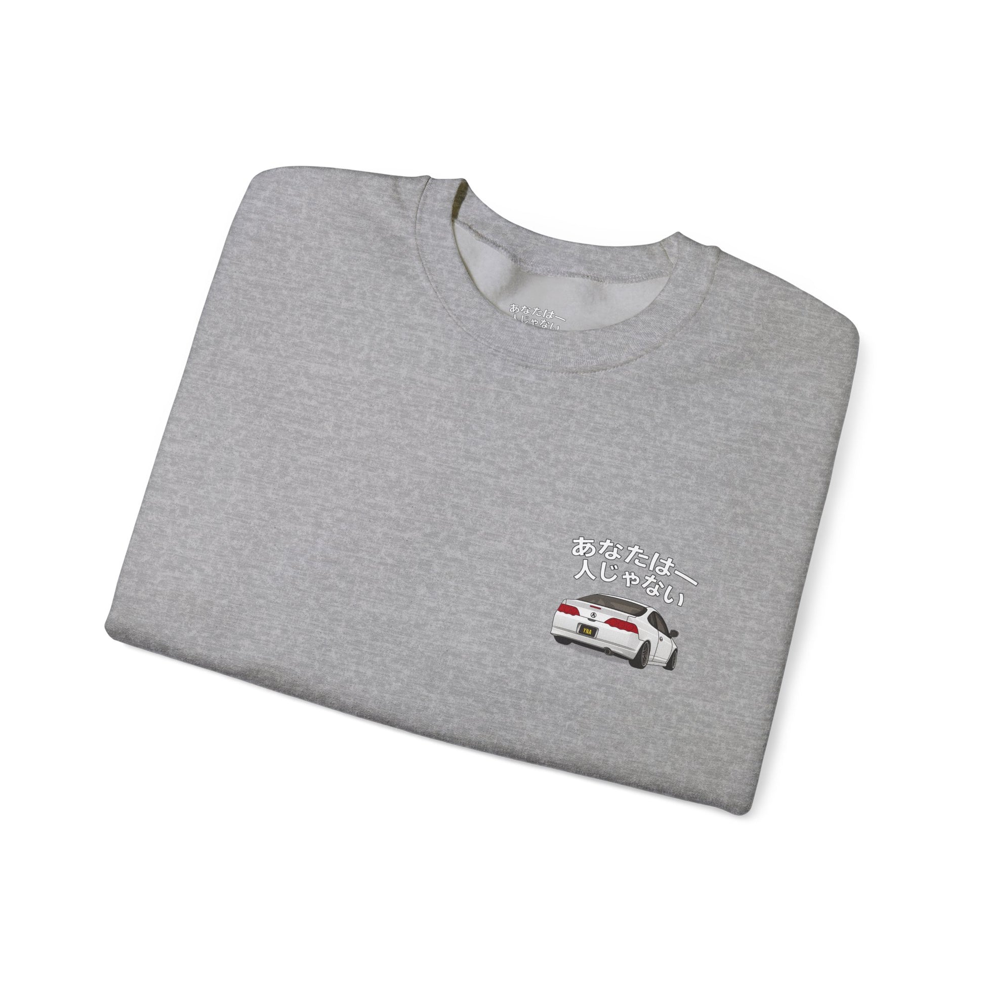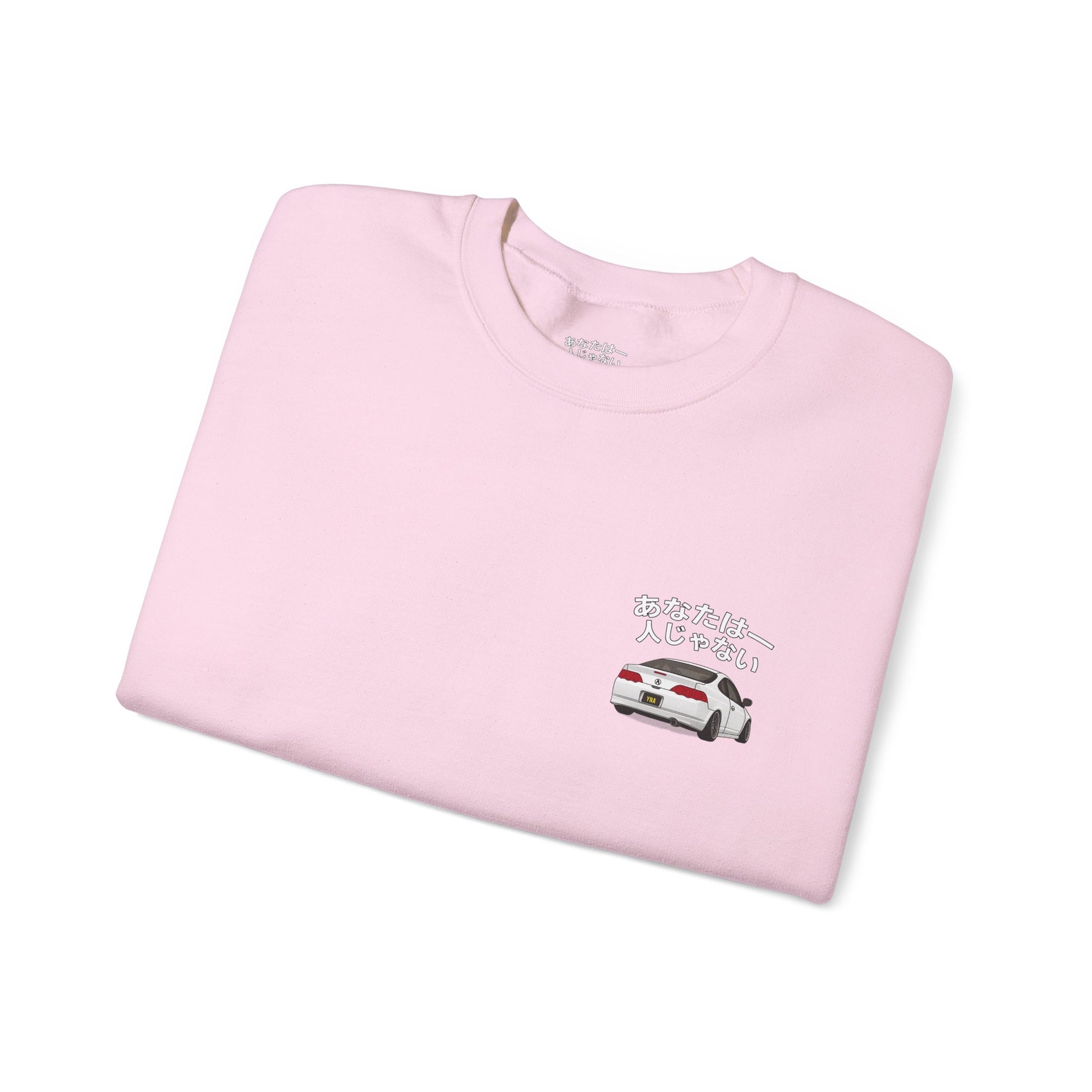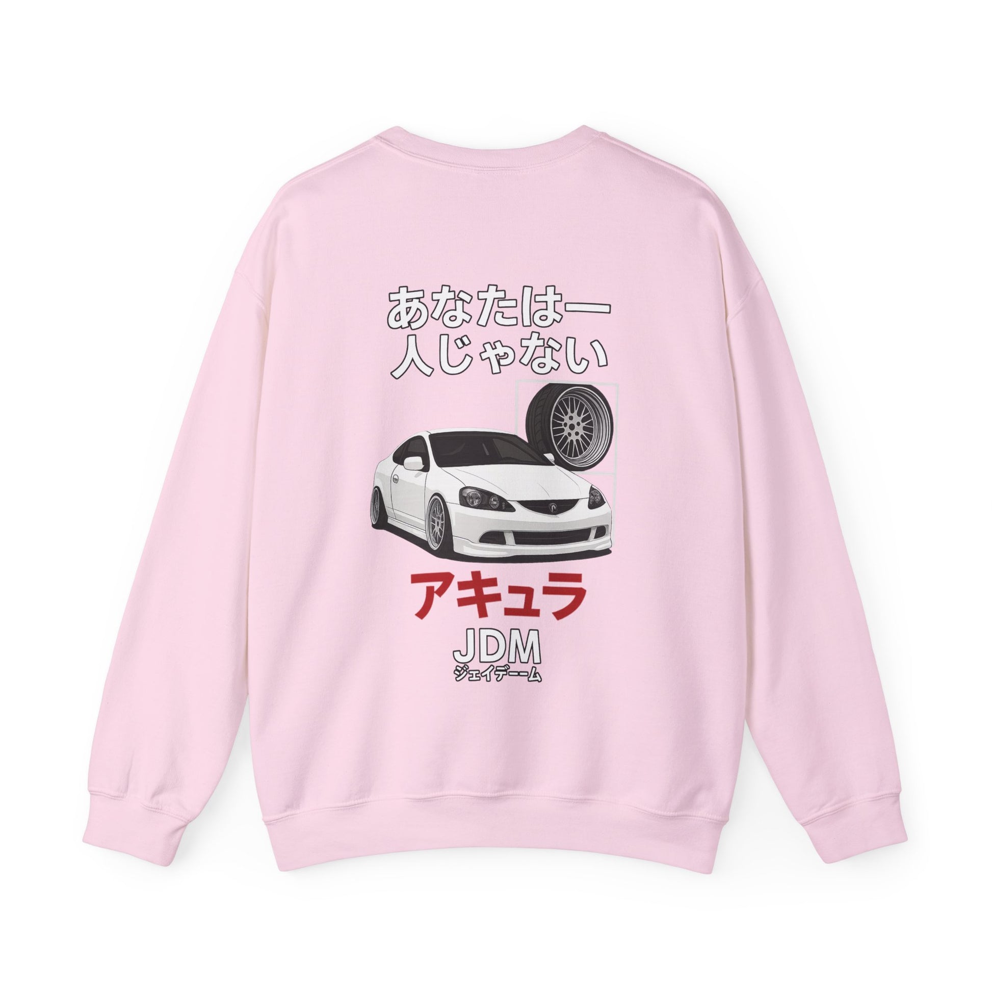 This isn’t just a sweater — it’s a statement. Featuring a slammed DC5 with perfect camber and a bold red finish, this piece blends Japanese car culture with the deeper message: あなたは一人じゃない ("You're not alone").