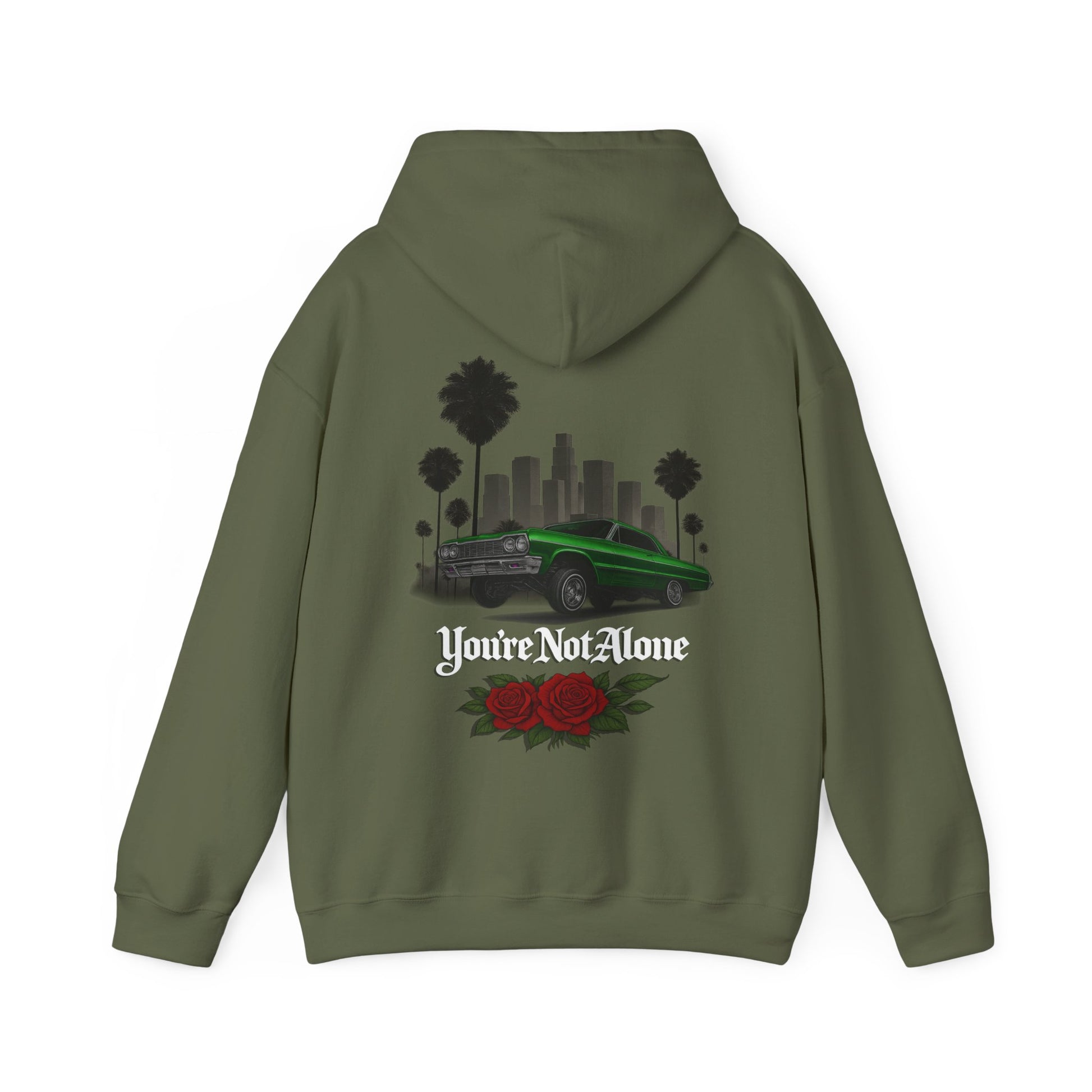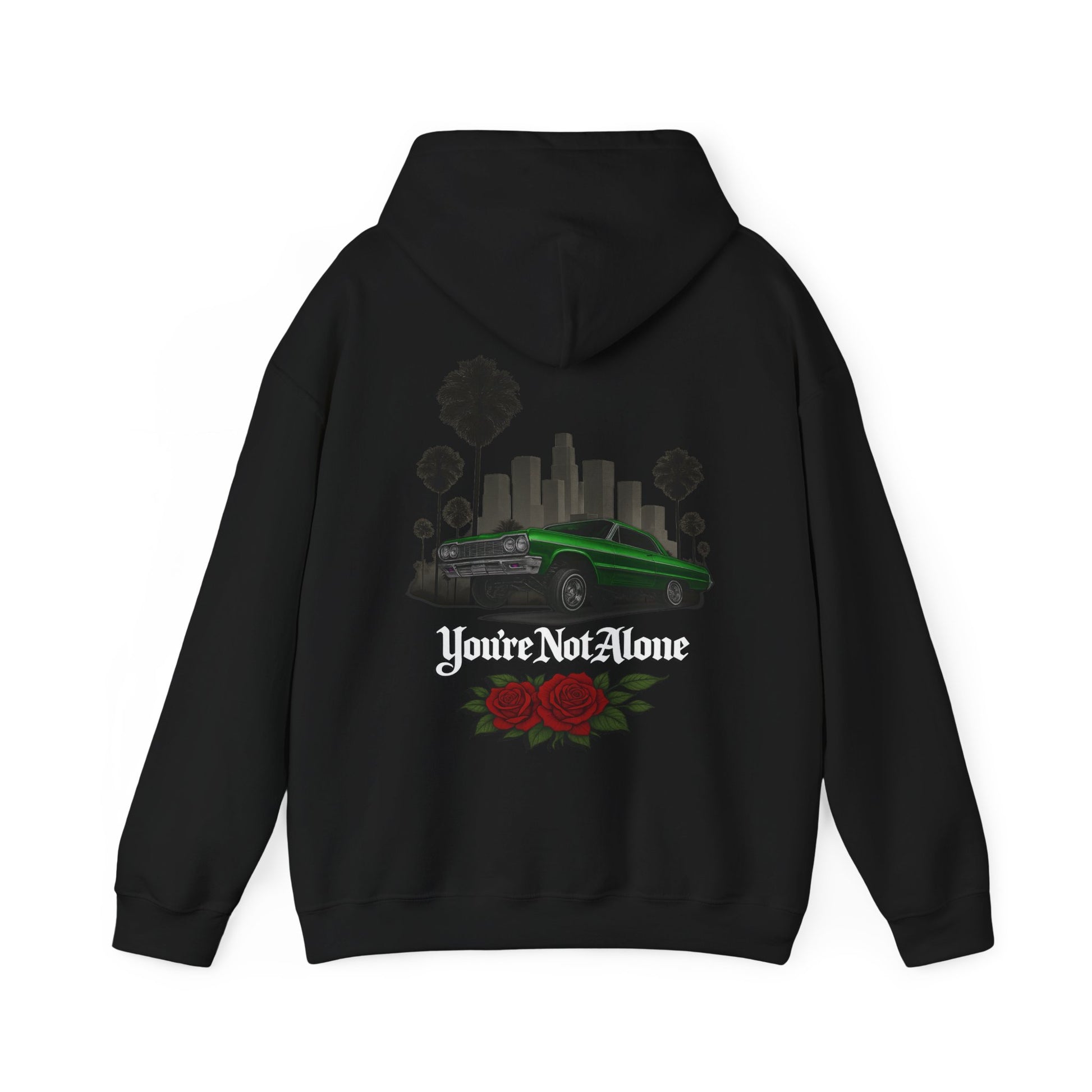 Introducing the 'You're Not Alone' Lowrider Hoodie — where comfort meets culture.