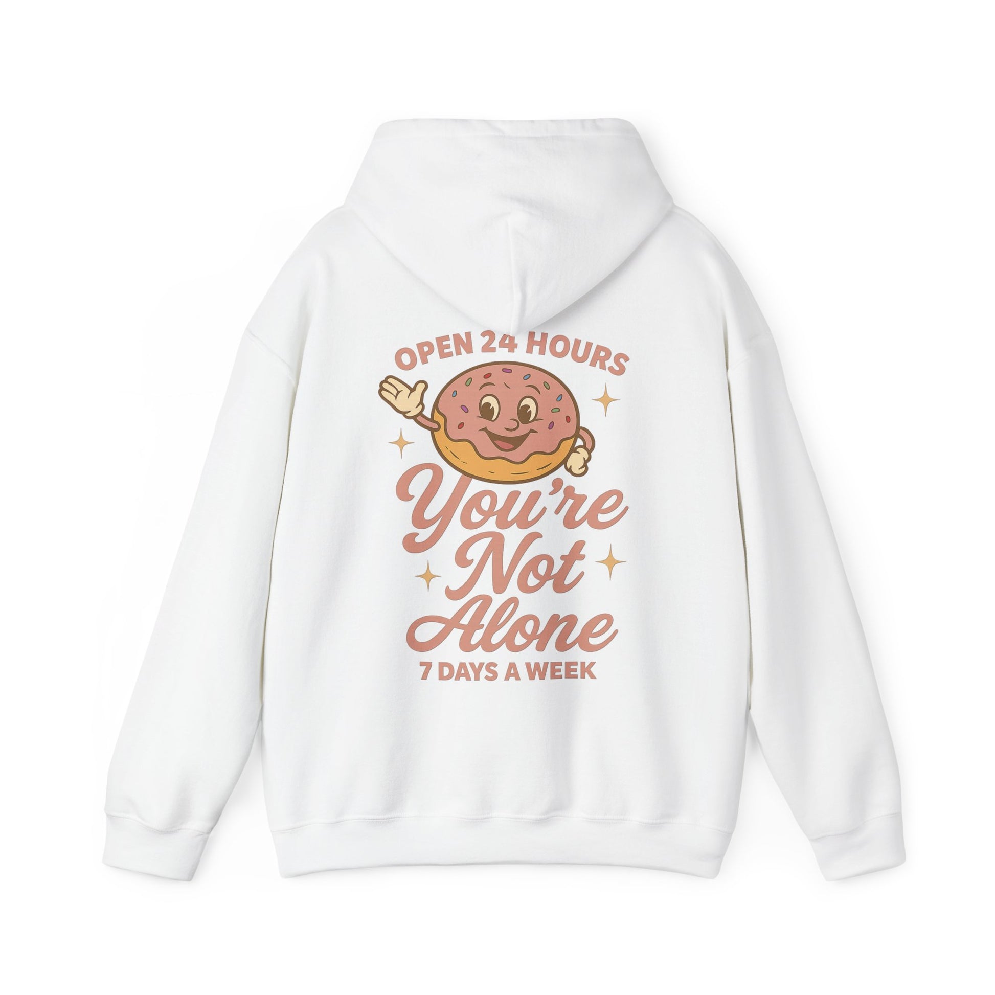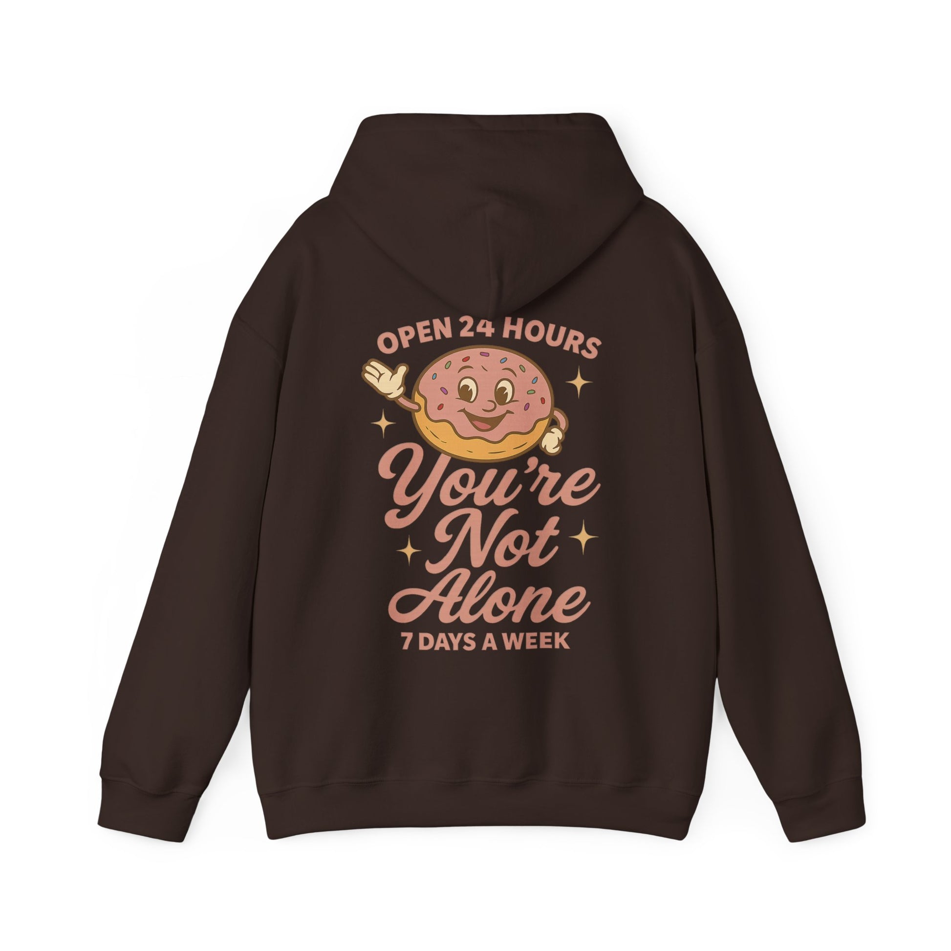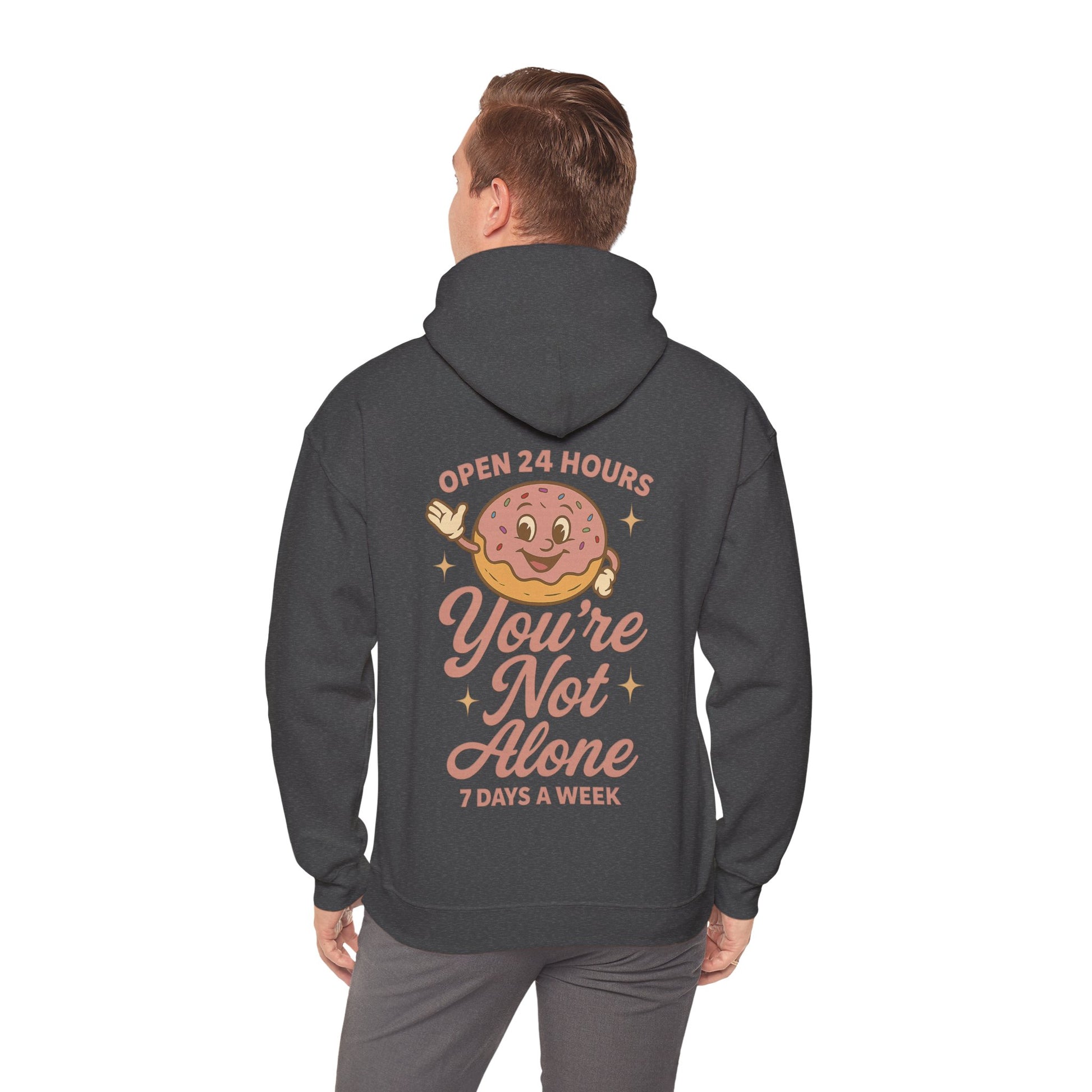 Sink into comfort with our Unisex Garment-Dyed "You're Not Alone" Hoodie — a laid-back statement piece designed to support more than just your style. Featuring a custom Donut graphic with a message that hits deeper than dessert, this sweater was created to celebrate the release of my single "You're Not Alone" and spark real conversations around mental health.