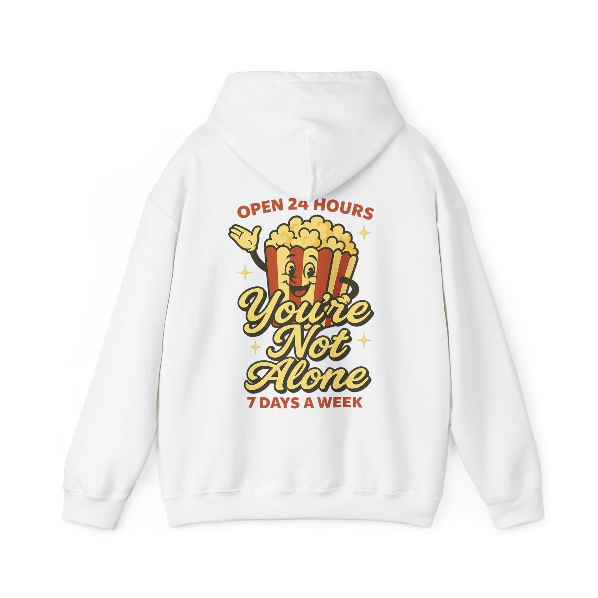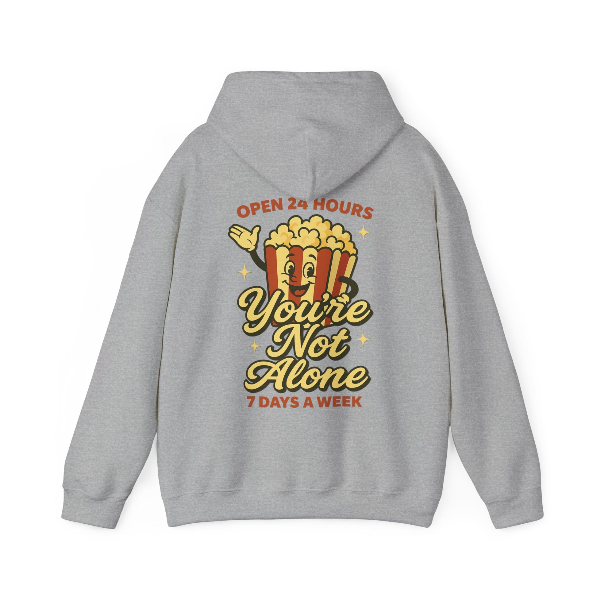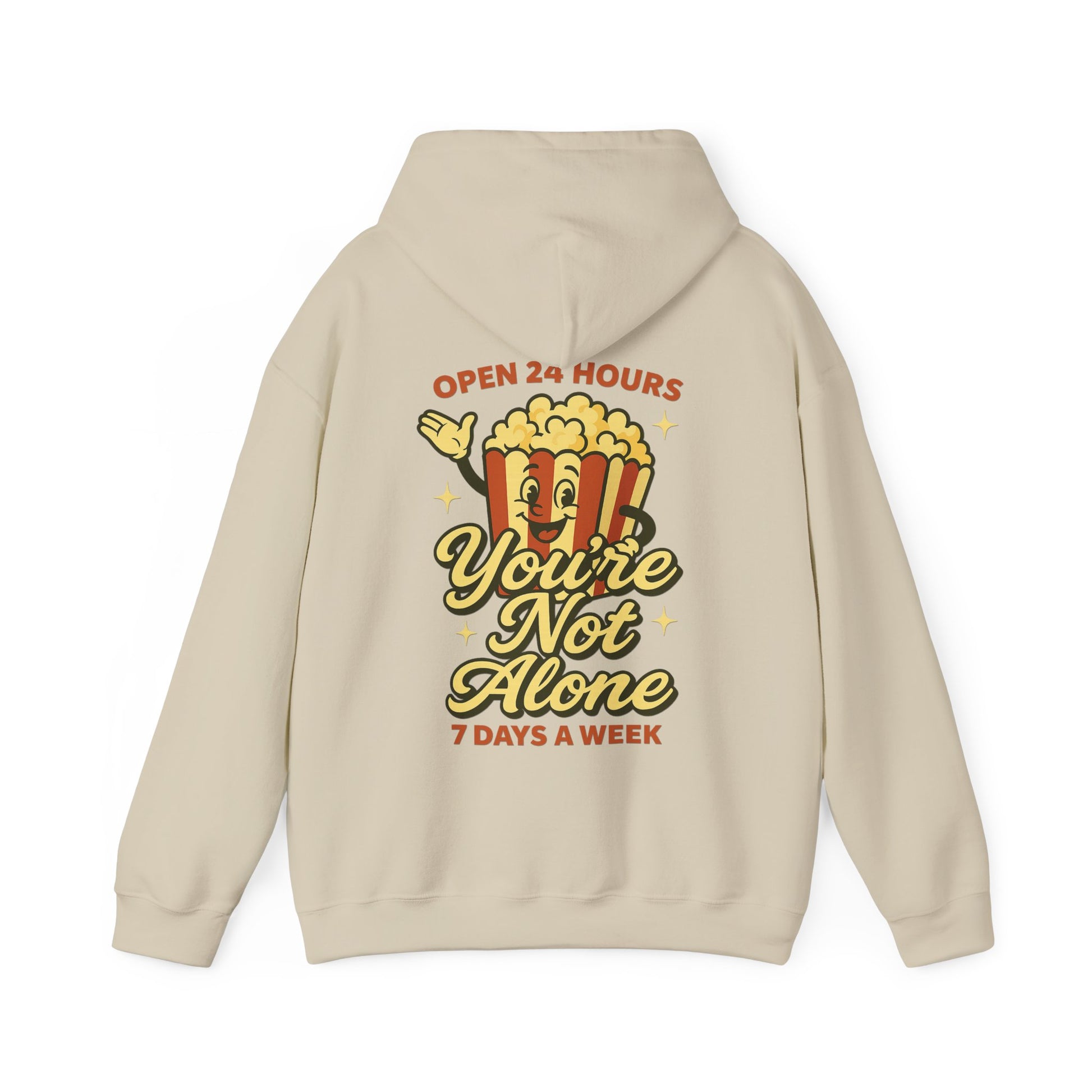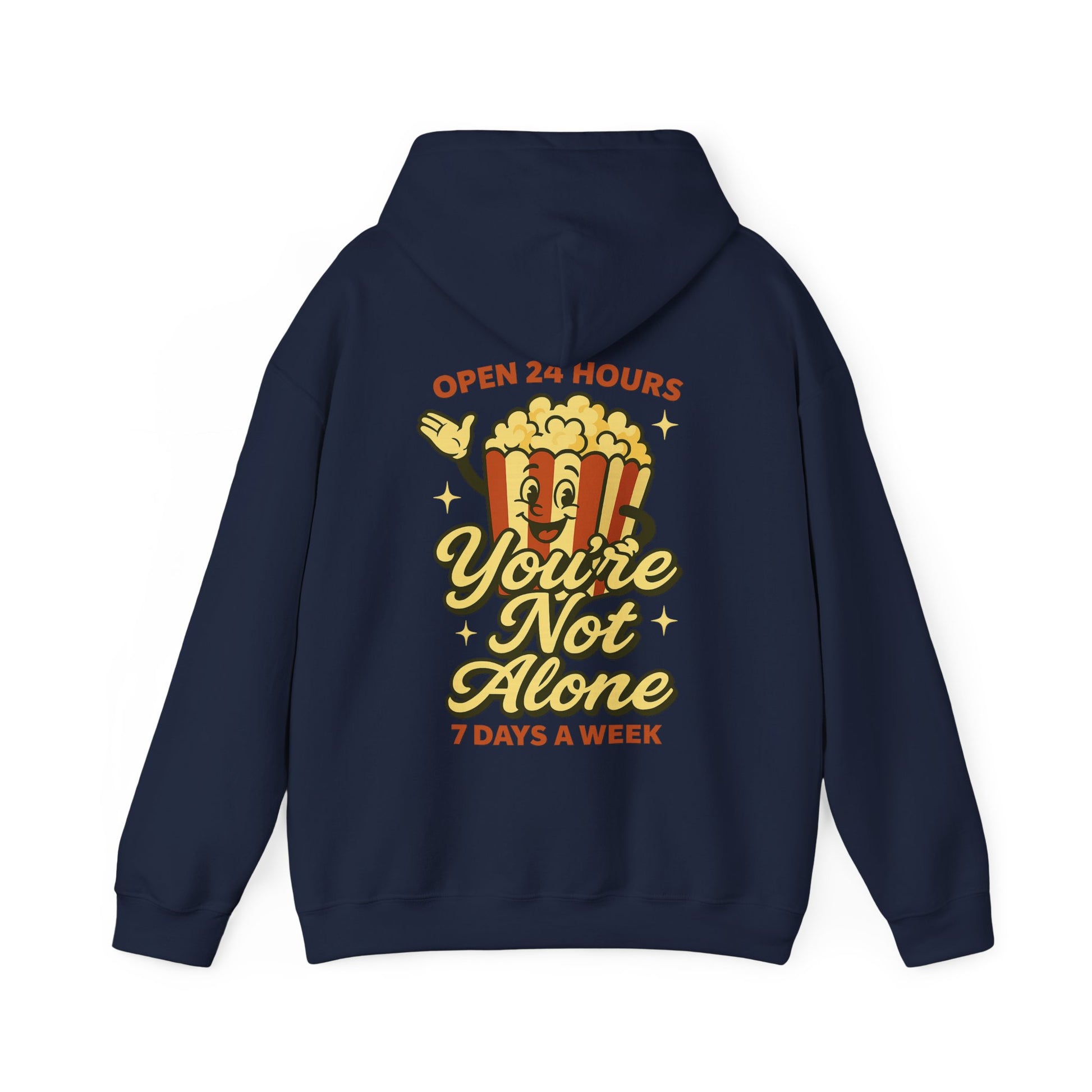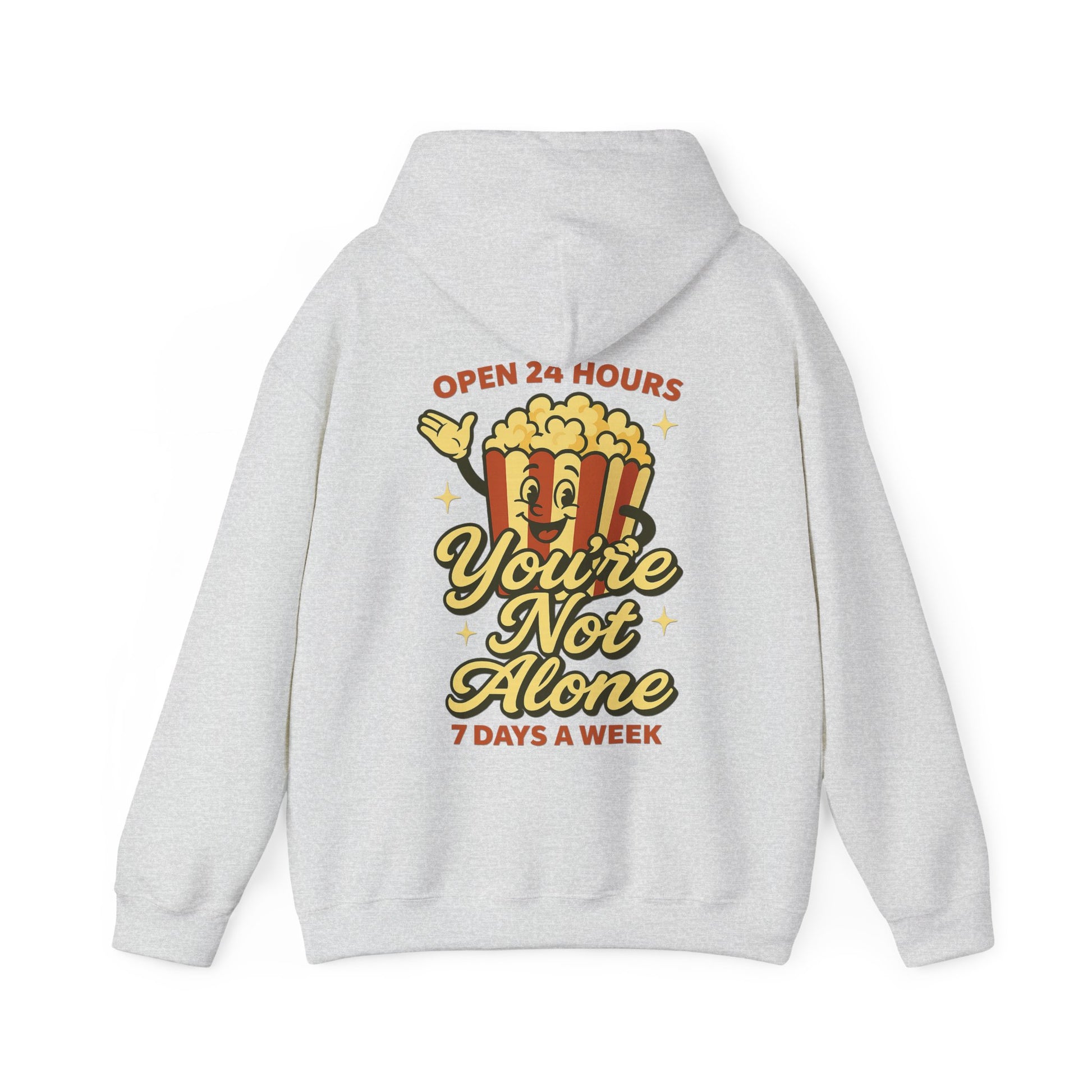 Sink into comfort with our unisex, garment-dyed “You’re Not Alone” Hoodie — a laid-back statement piece that supports more than just your style. Featuring a custom popcorn-inspired graphic and a message that hits deeper than your favorite late-night snack, this hoodie celebrates the release of my single “You’re Not Alone” and sparks real conversations around mental health.