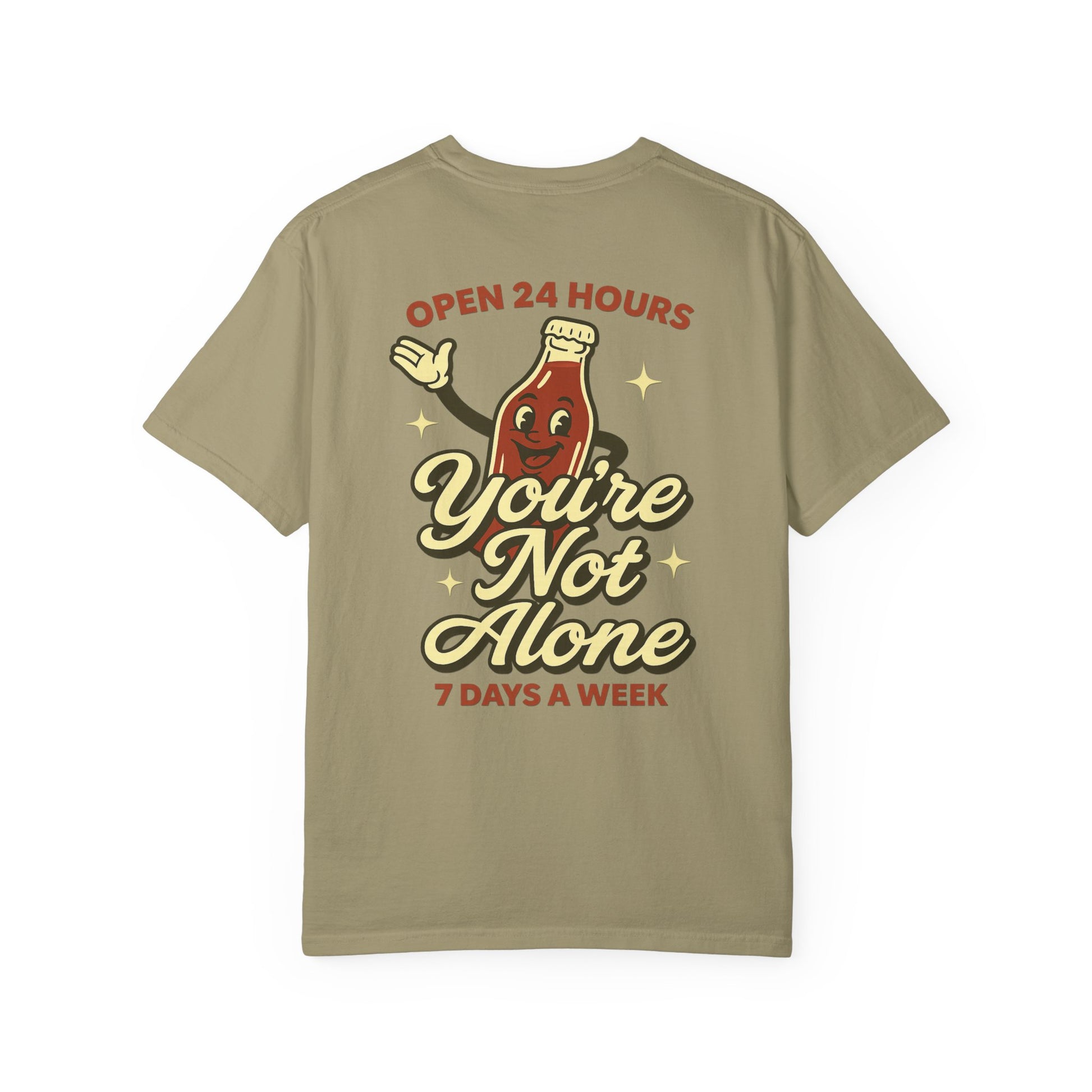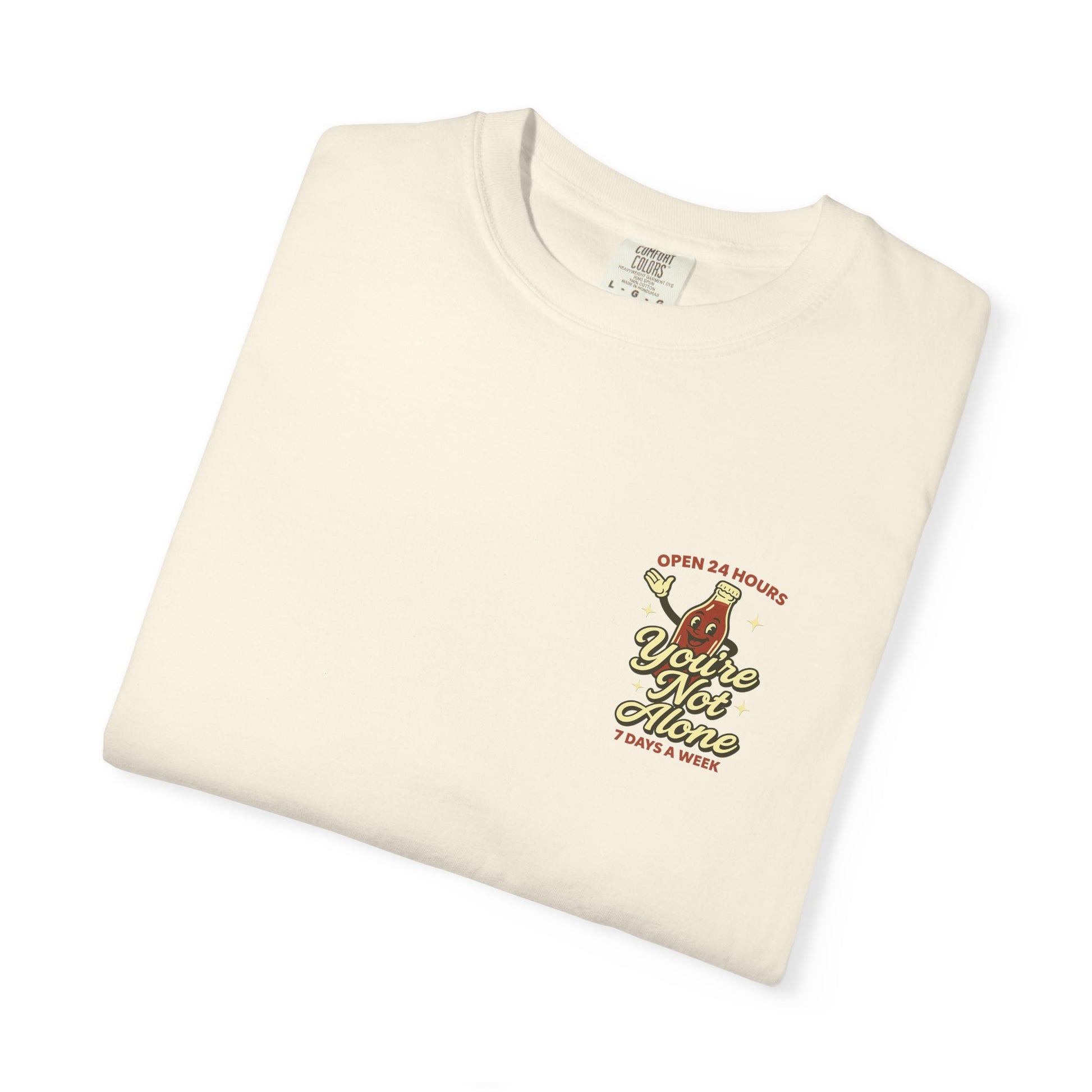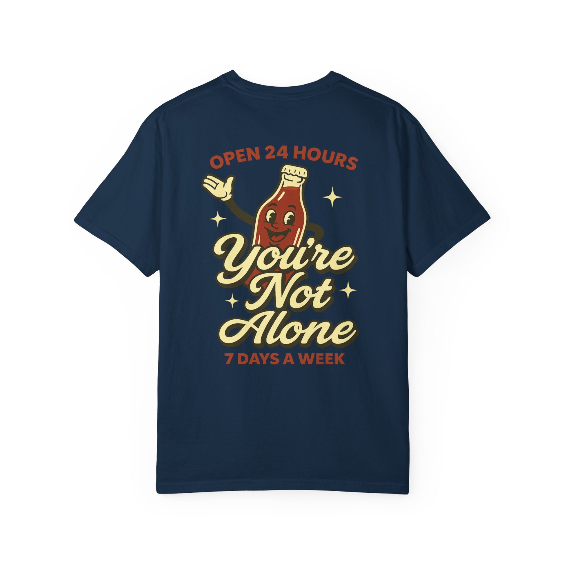 Sink into comfort with our Unisex Garment-Dyed "You're Not Alone" Tee — a laid-back statement piece designed to support more than just your style. Featuring a custom Soda graphic with a message that hits deeper than thirst, this tee was created to celebrate the release of my single "You're Not Alone" and spark real conversations around mental health.