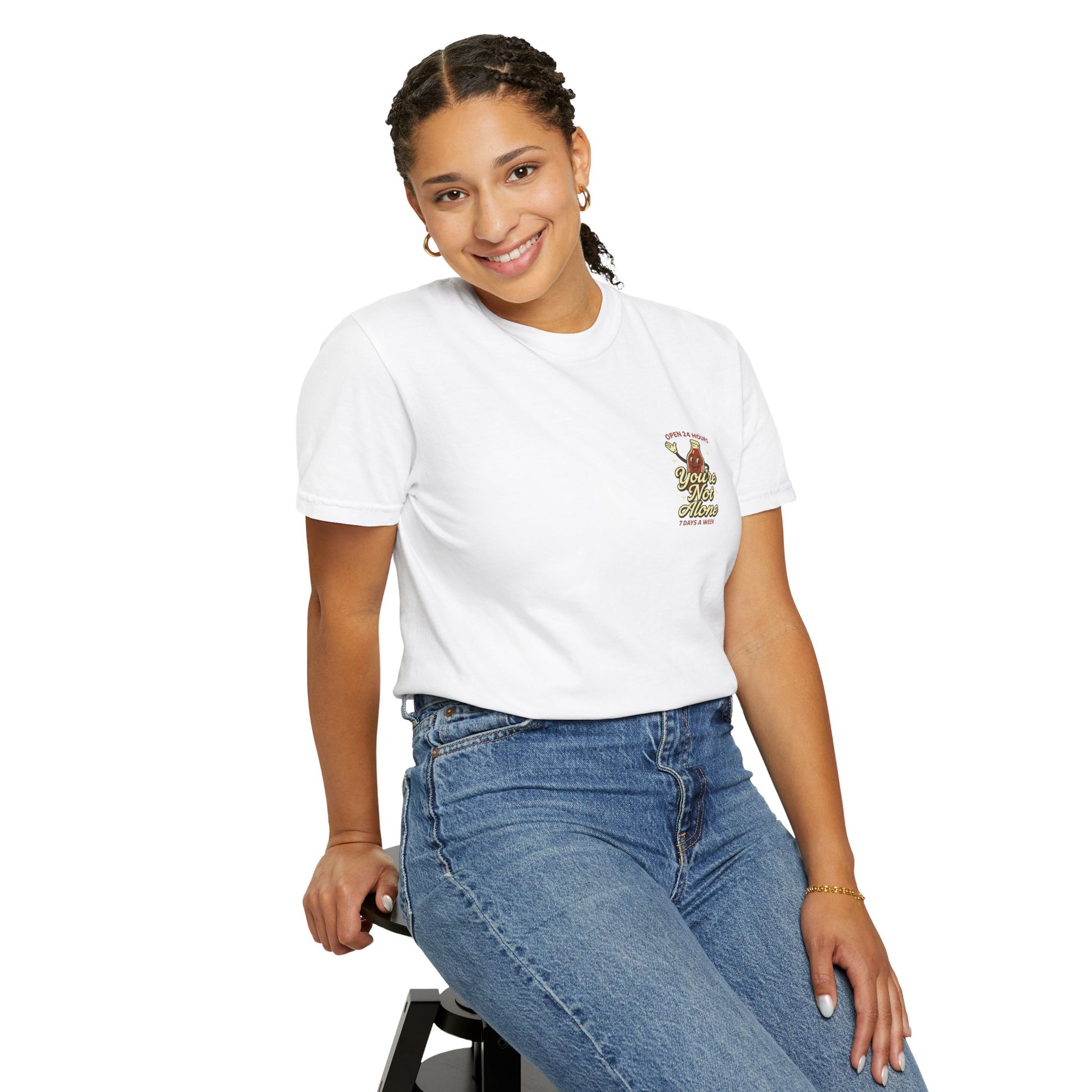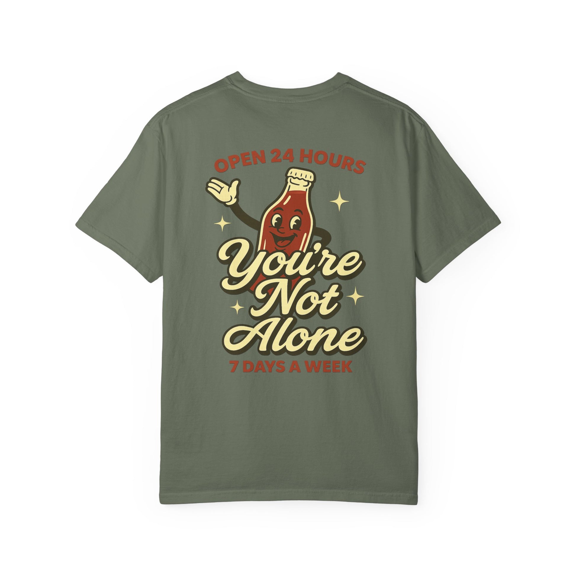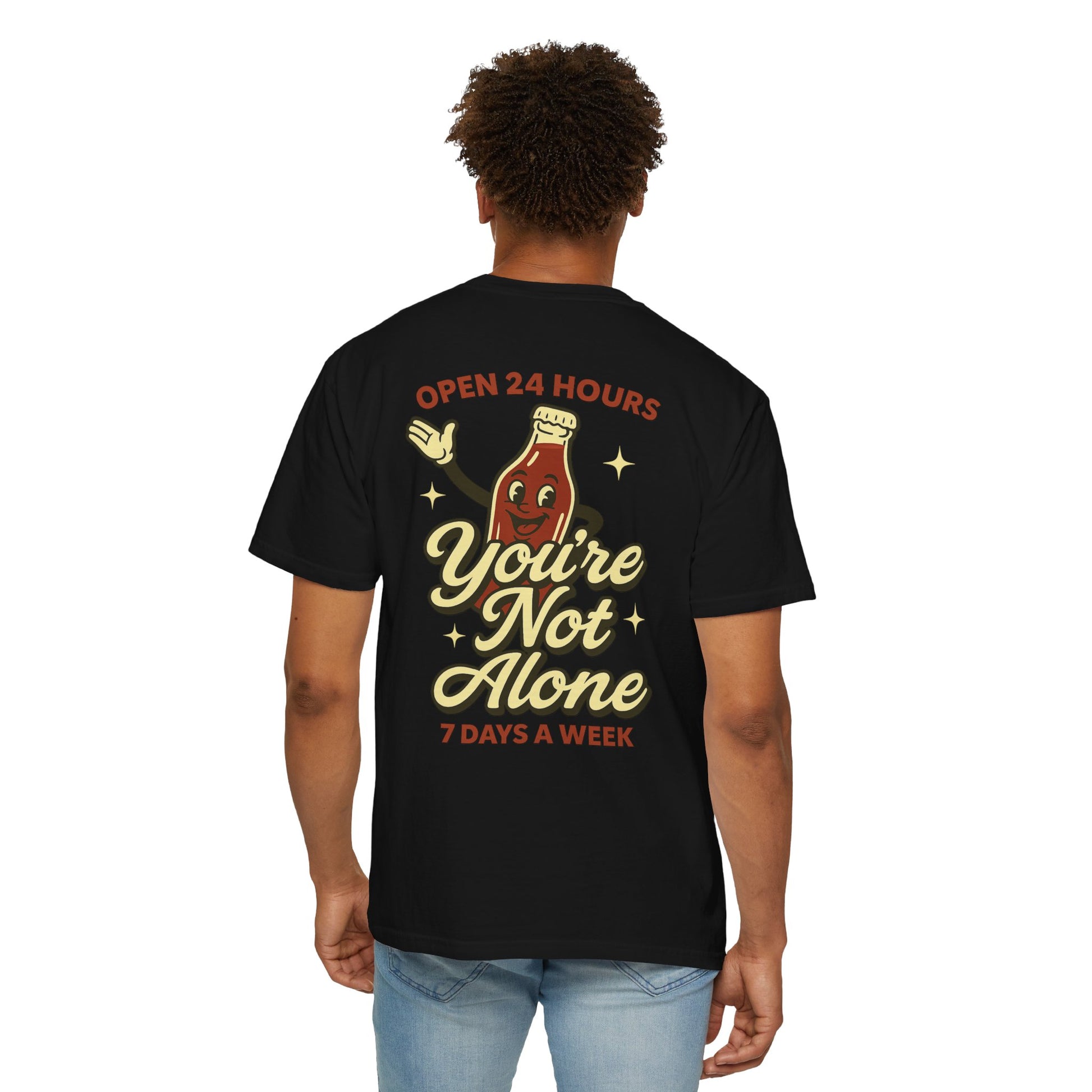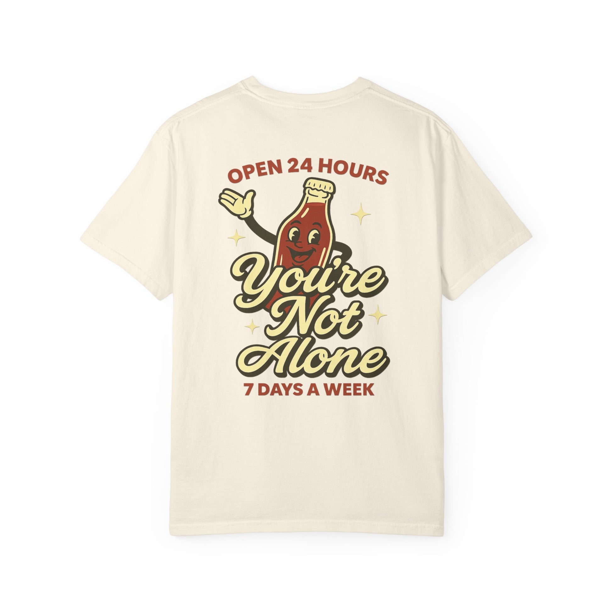 Sink into comfort with our Unisex Garment-Dyed "You're Not Alone" Tee — a laid-back statement piece designed to support more than just your style. Featuring a custom Soda graphic with a message that hits deeper than thirst, this tee was created to celebrate the release of my single "You're Not Alone" and spark real conversations around mental health.