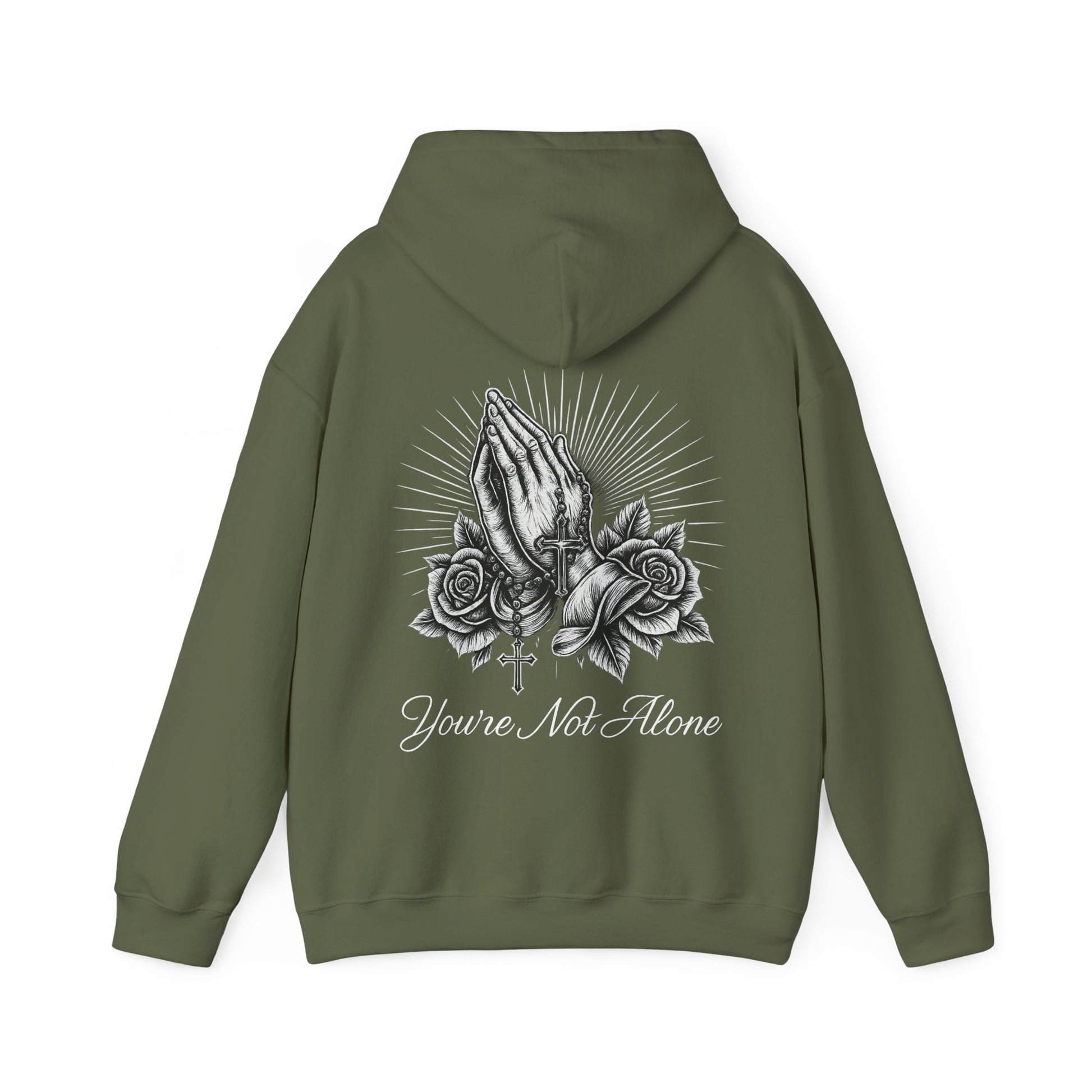 The Praying Hands Hoodie features a detailed, hand-drawn illustration inspired by classic religious and tattoo-style artwork. Centered around prayer, roses, and radiant light, this design represents strength through struggle and the reminder that you’re not alone, even in your hardest moments.