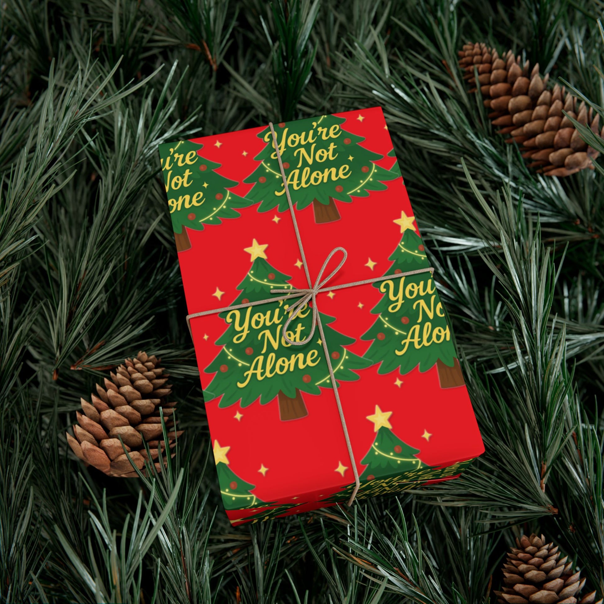 “You’re Not Alone” Holiday Wrapping Paper | Red & Green Christmas Gift Wrap with Uplifting Message